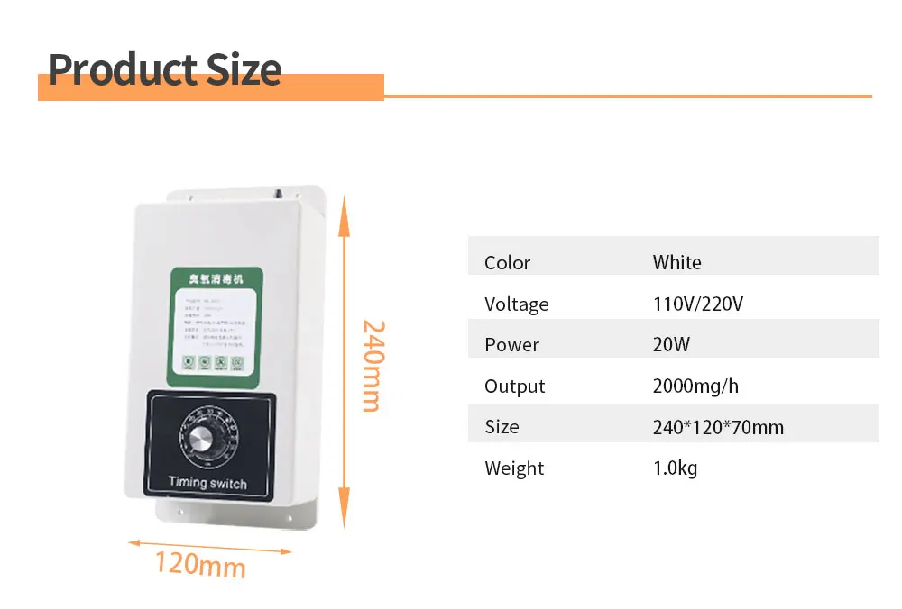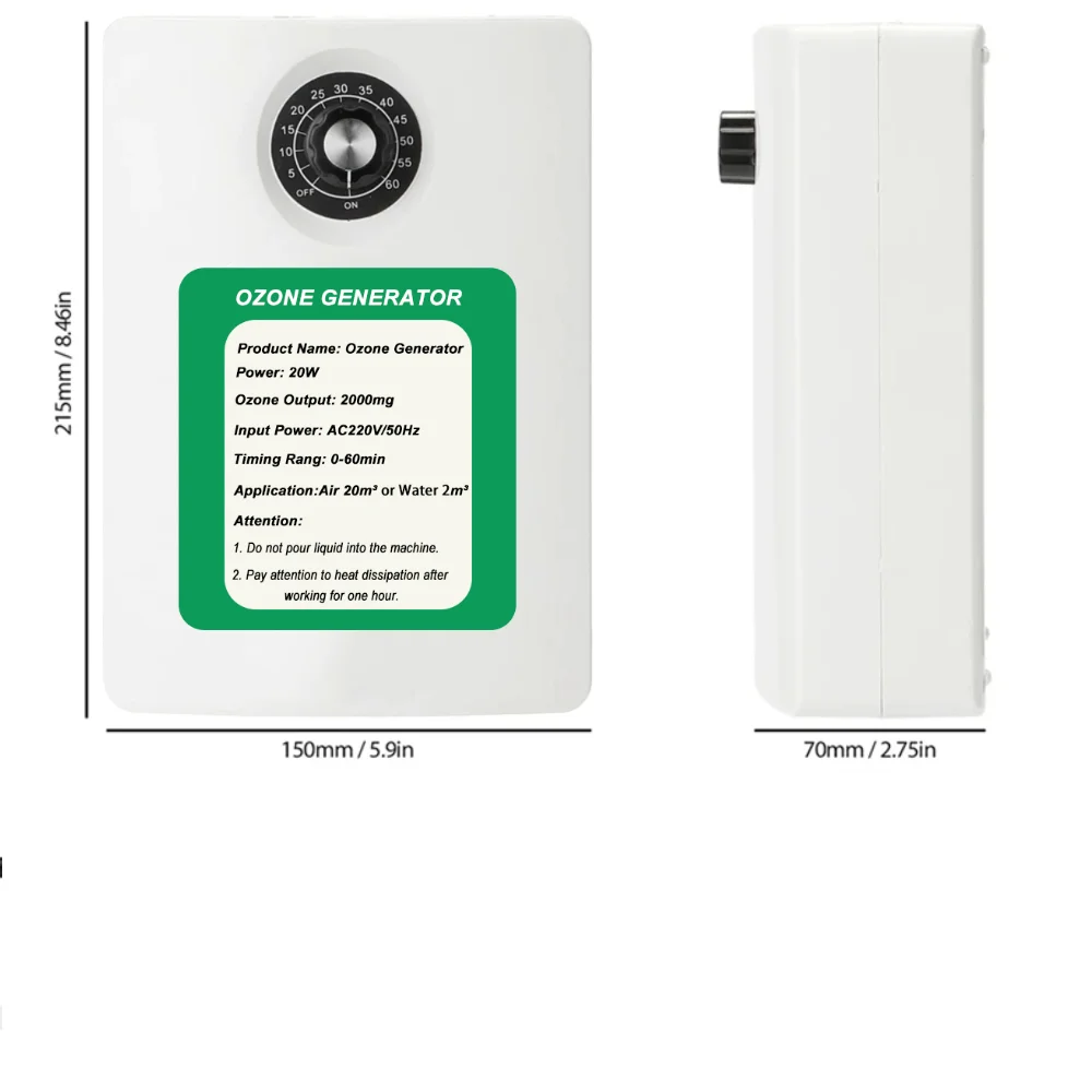 Ozone Output:1000mg/2000mg/h