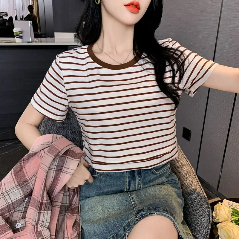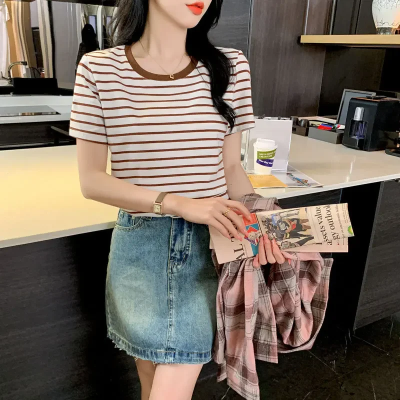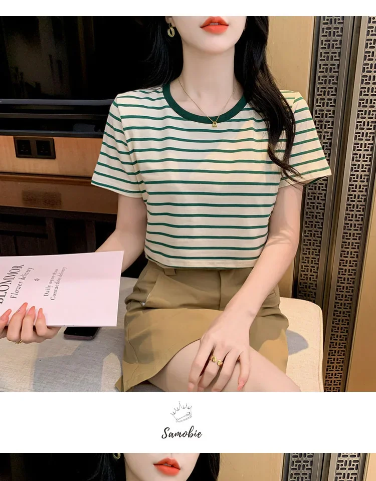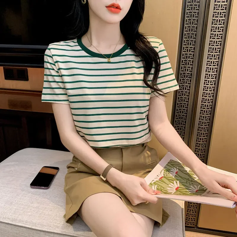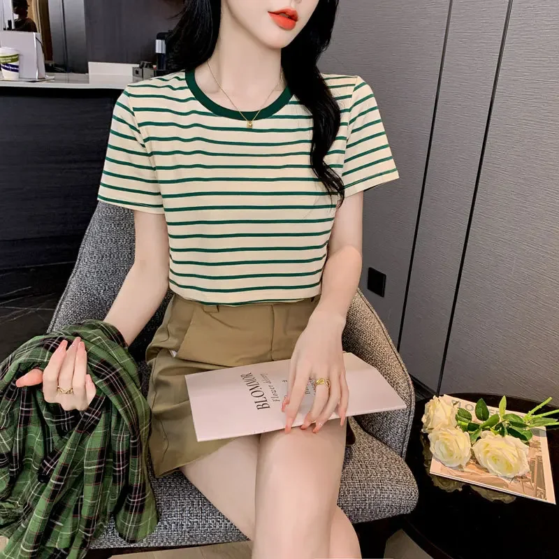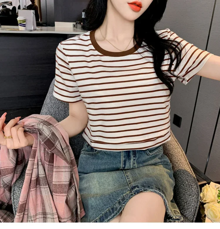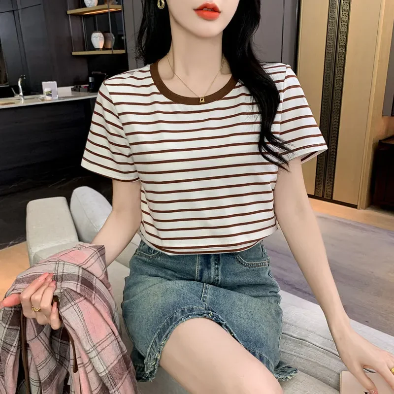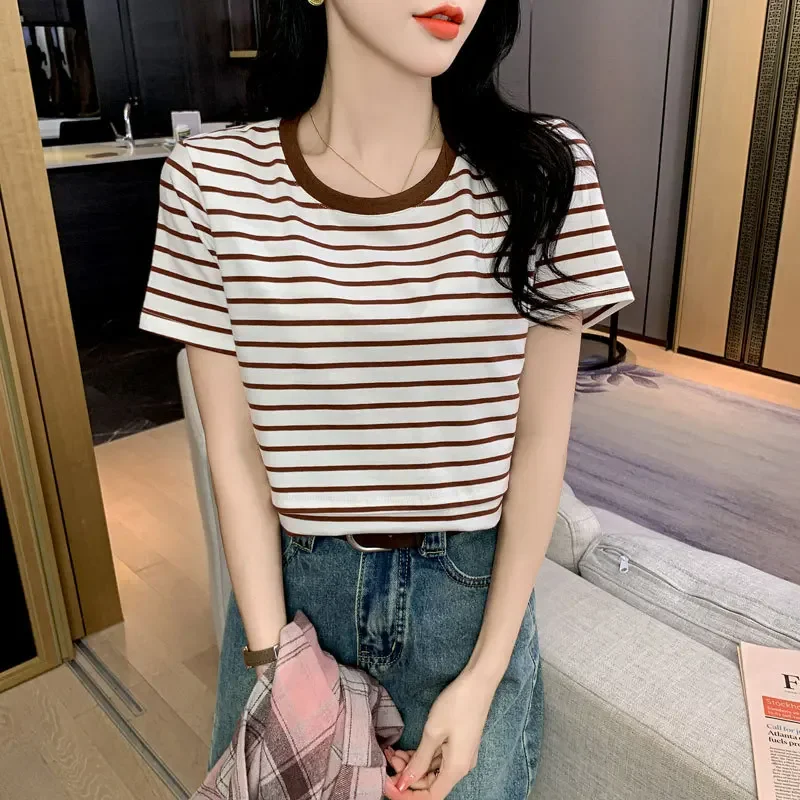 New 2025 Striped Nursing T-Shirt Soft Comfortable Summer Postpartum Mommy Feeding Top Base Shirt Maternity