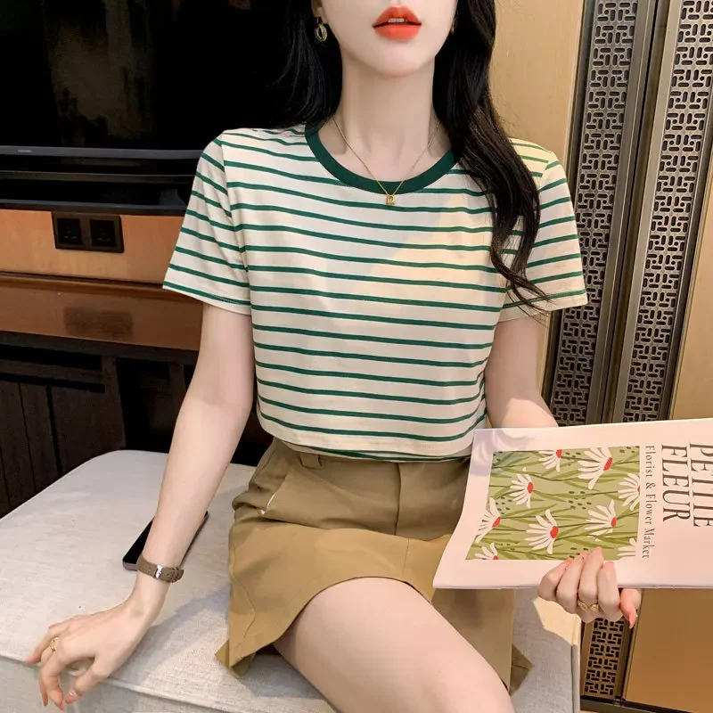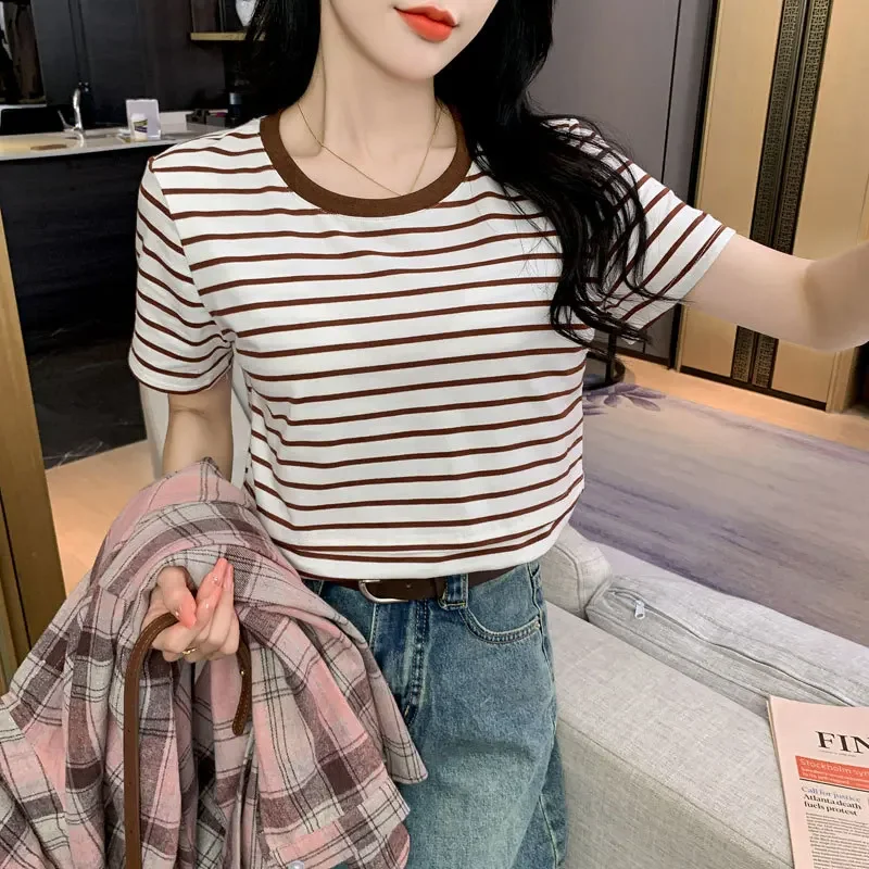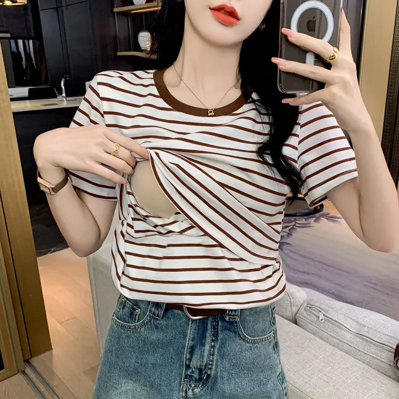 New 2025 Striped Nursing T-Shirt Soft Comfortable Summer Postpartum Mommy Feeding Top Base Shirt Maternity Wear Baby Feeding