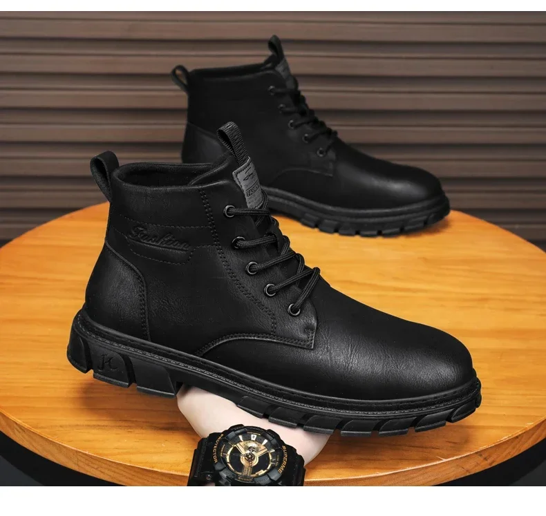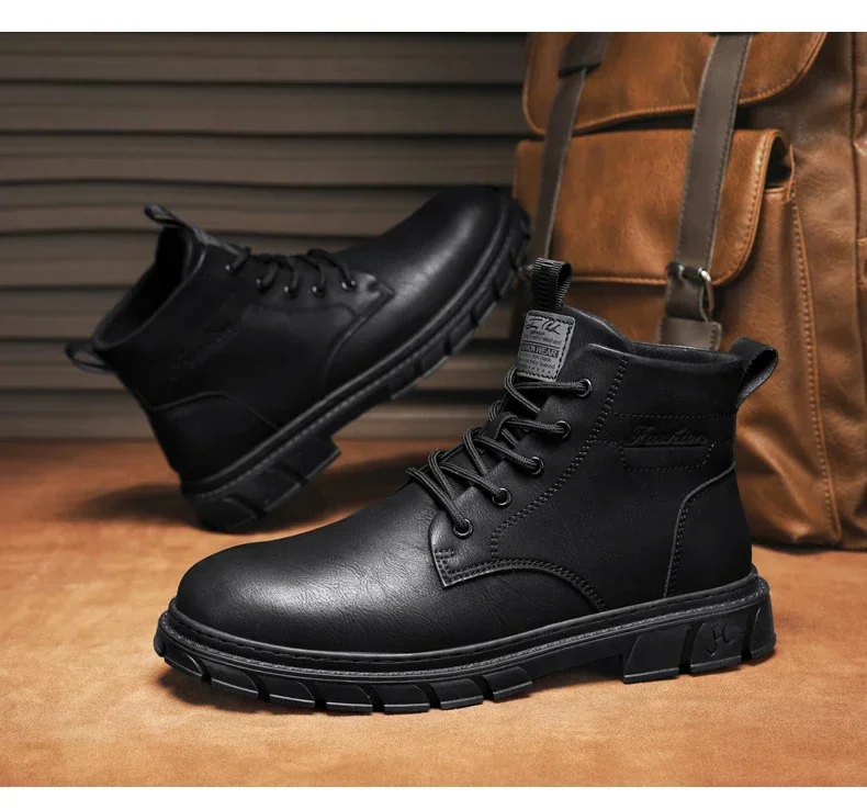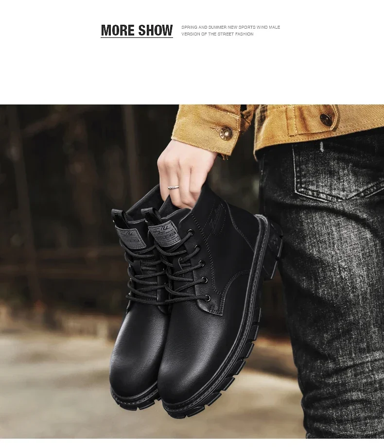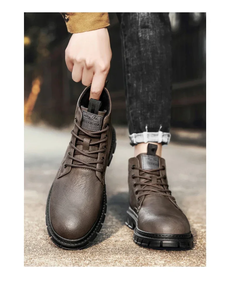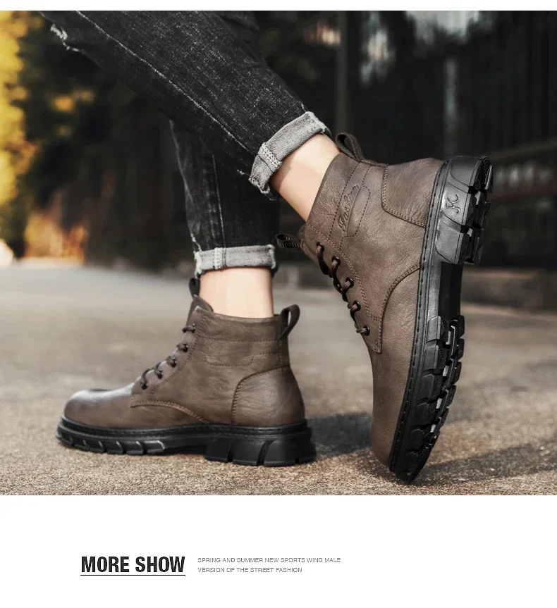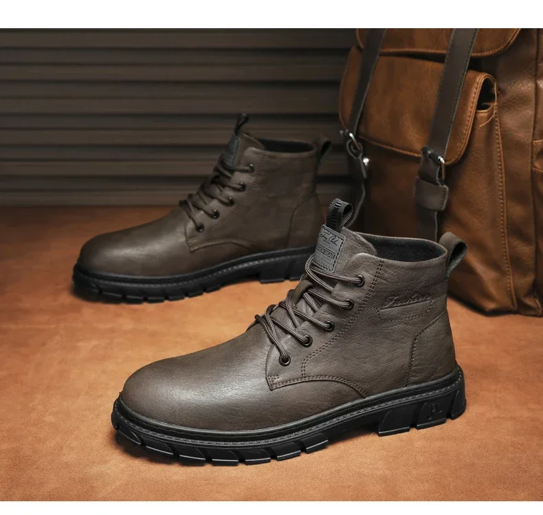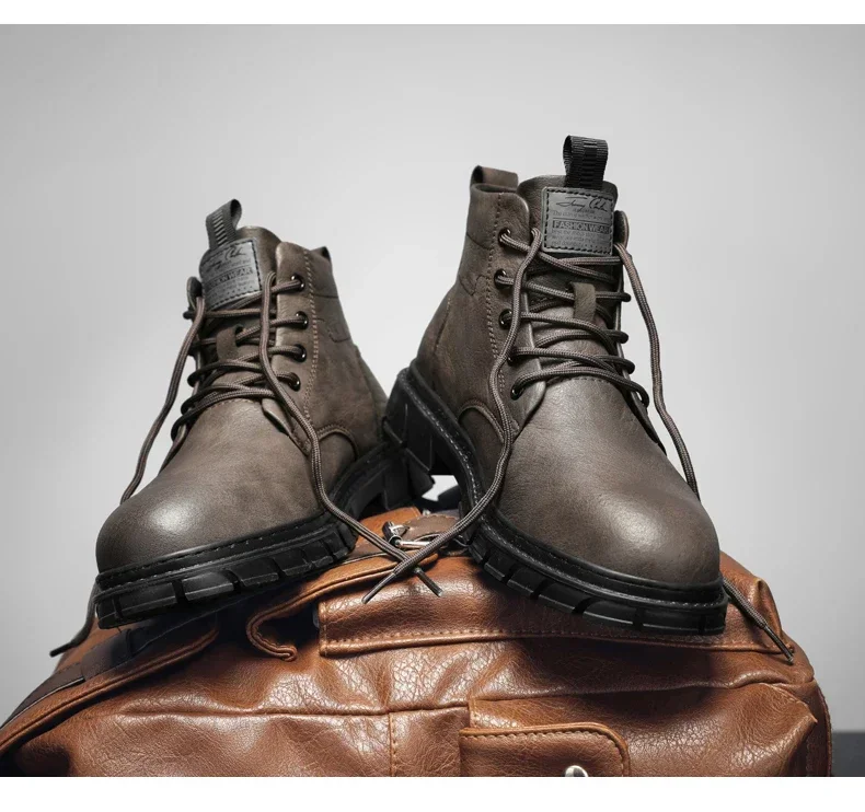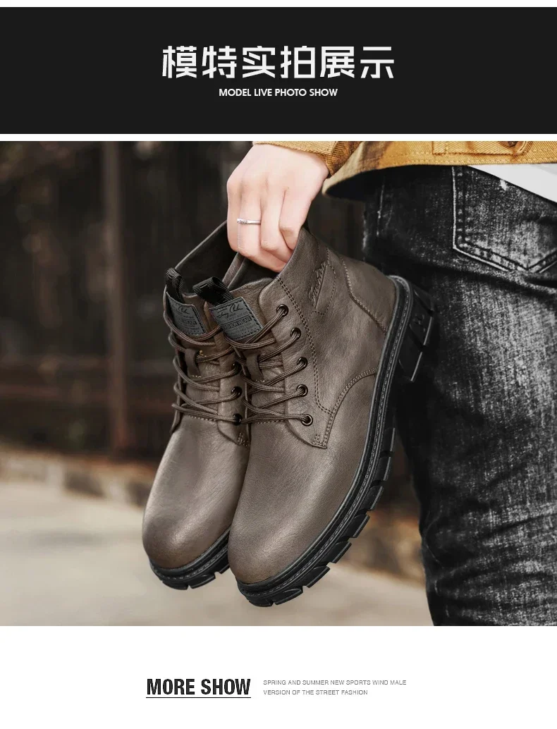 Men's Boots Trendy Men's Shoes British Cargo Boots Outdoor Casual Shoes Man Shoes Ankle Boots Retro Style Leather Wear-resistant