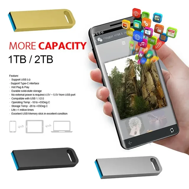 New 2TB Metal Flash Drive USB 3.0 Super High Speed Transfer Mini U Disk Waterproof