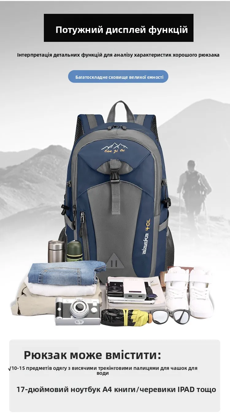 This 40L outdoor hiking backpack offers ample space for all your travel essentials, making it perfect for both men and women.