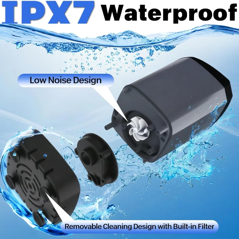 💦【Upgraded Portable Shower Pump】: Our portable shower pump is made of a reliable and durable motor which makes low noise, providing you with a quiet outdoor camping shower environment.The bottom of the camping shower pump is designed with a suction cup, which can sink to the bottom of the water and firmly hold your bucket. At the same time, there is a filter at the bottom to filter out most of the debris, which can be removed to clean the debris inside.