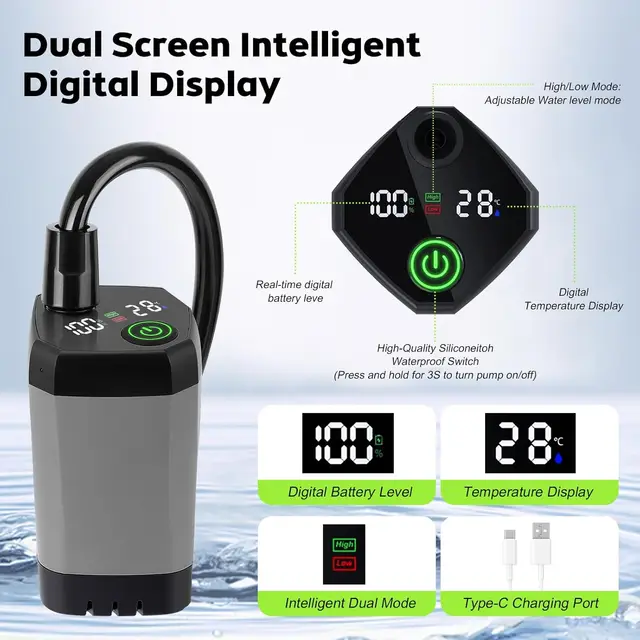 💦【Upgraded Intelligent Digital Display】: Portable outdoor shower pump can intelligently measure and quickly display water temperature digitally from 32-212°F(0-100°C),clearly indicate power status from 0-100%.Keep informed to prevent heat burns and power interruptions during your camping shower.(The pump has no heating function.)You can also see whether high(High Efficiency Mode)or low(Energy Saving Mode)is turned on from the screen.