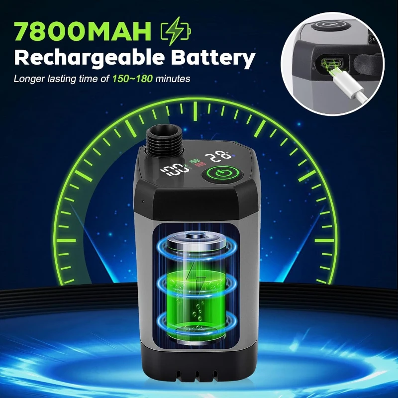 💦【Long-Lasting Rechargeable Battery】:Portable camping shower has a built-in 7800mAh lithium battery that provides 120-160 minutes of battery endurance per charge in just 3-4 hours. if you choose 6000mAh battery, this shower pump runs up to 120-150 minutes without interruption.This camping shower has a TYPE-C charging port, which is truly universal for multiple charging cables,you can charge it via a mobile phone charger (5V 2A), a laptop’s USB output, or a car’s USB output.No need to have a dedicated charging cable.