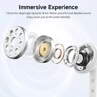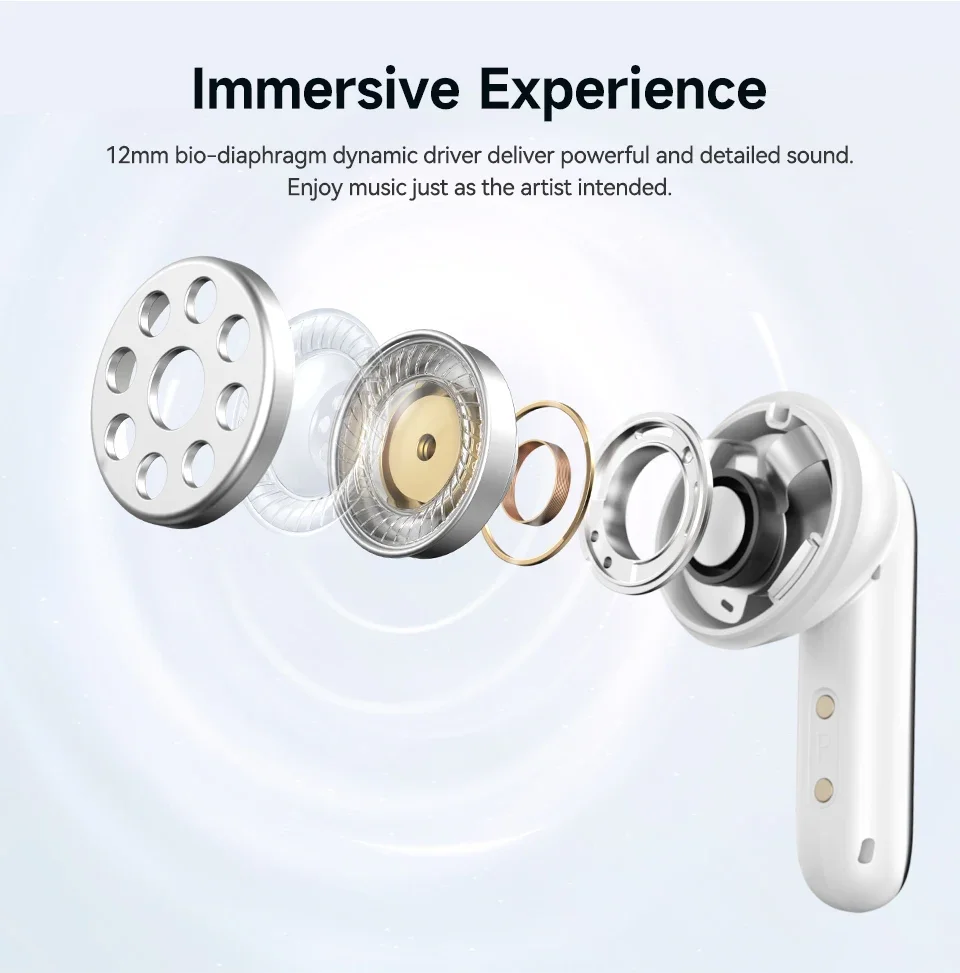 Immersive Experience: The wireless earbuds equipped with a 12mm bio-diaphragm dynamic driver, these earbuds deliver powerful and detailed sound.Enjoy music just as the artist intended.