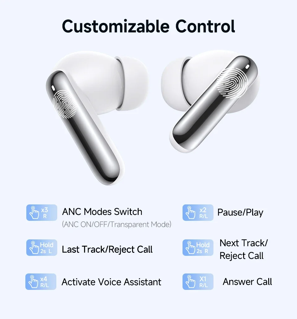 Transparent Mode: Take control of your ambient sound with transparency mode.Enjoy pure music while staying aware of voices and important notifications, ensuring safety on-the-go.