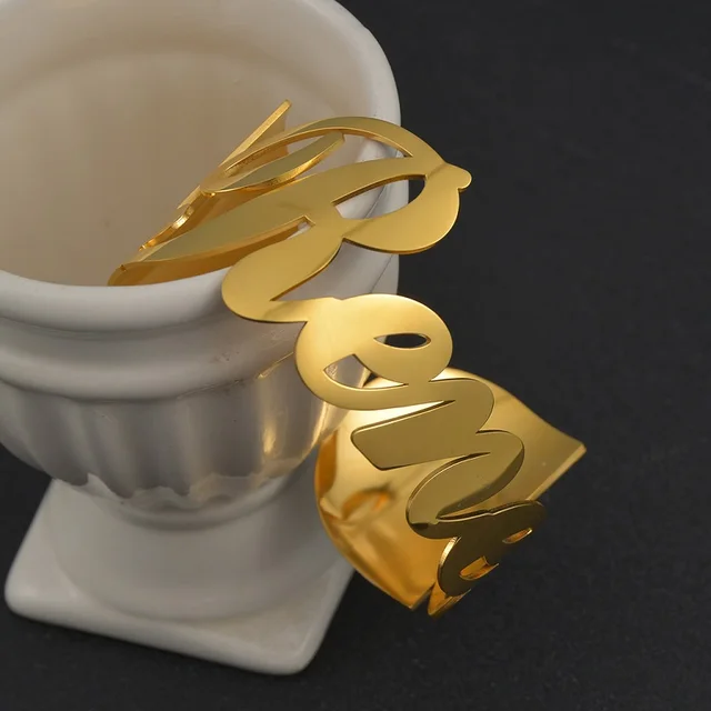 Name:New Arrival Cuff Bangle Stainless Steel Bracelet Vintage Style Women Personalized Name Custom  Jewelry Wedding Party Accessories