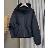 New Arrival Women's Casual Hooded Jacket Black Windbreaker Coat New Style Autumn Top Quality Material Comfortable Fit