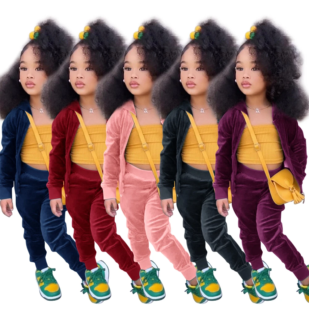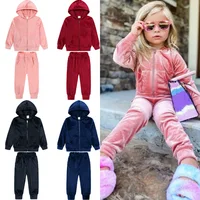 Baby Boys Girls Velvet Hooded Clothing Set Kids Jacket Coat Pants Suit for Sports Suits Tracksuits Toddler Children Clothes Set