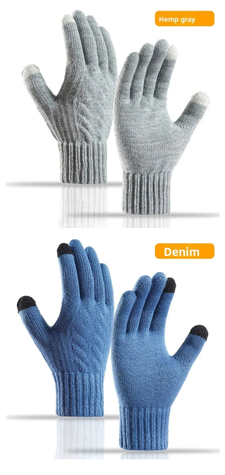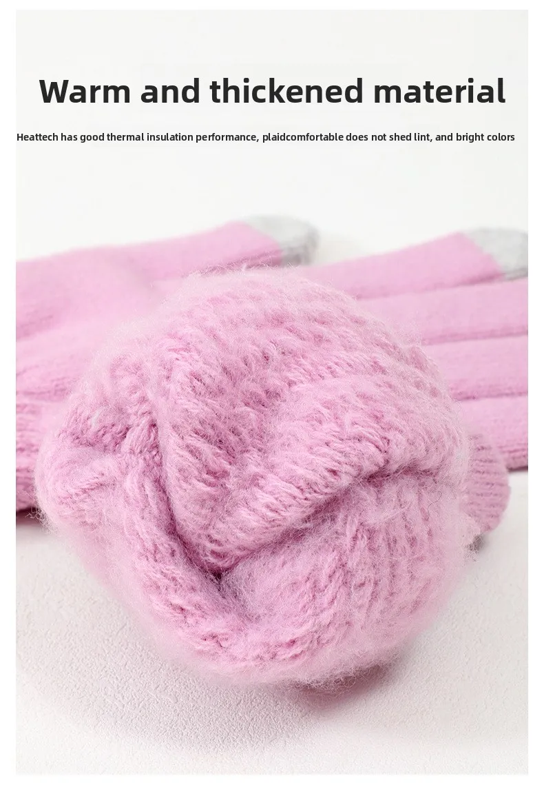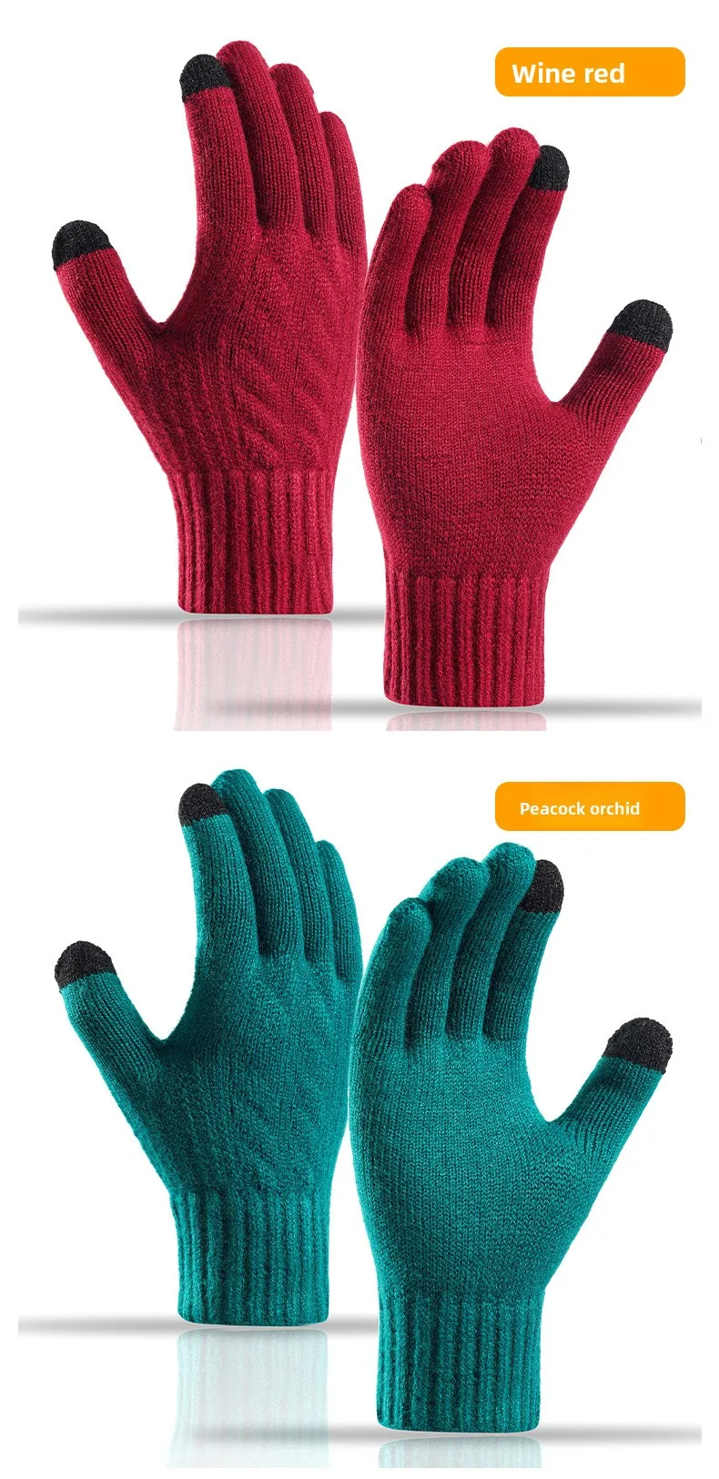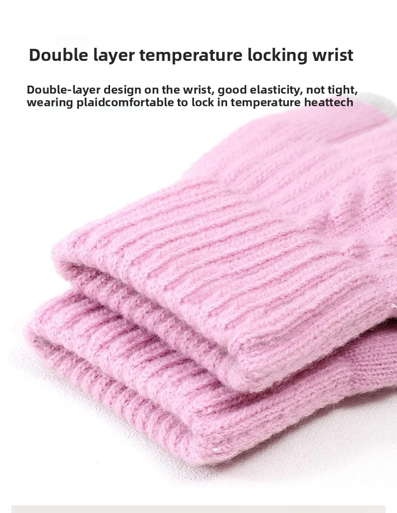 Christmas Reindeer Jacquard Knit Gloves with Plush Cuff Thick Warm Touchscreen Winter Soft Coldproof Warmth for Autumn Winter