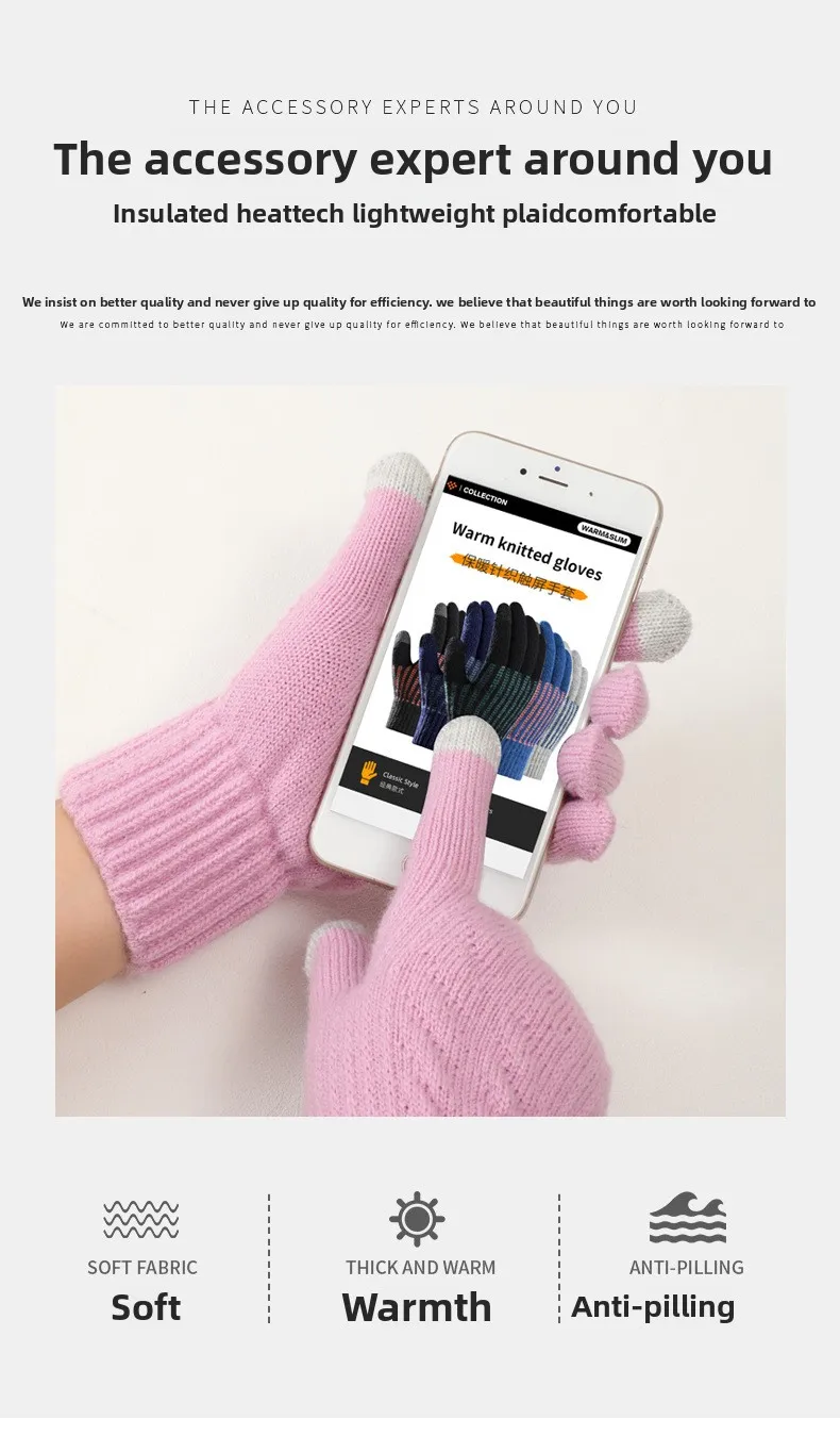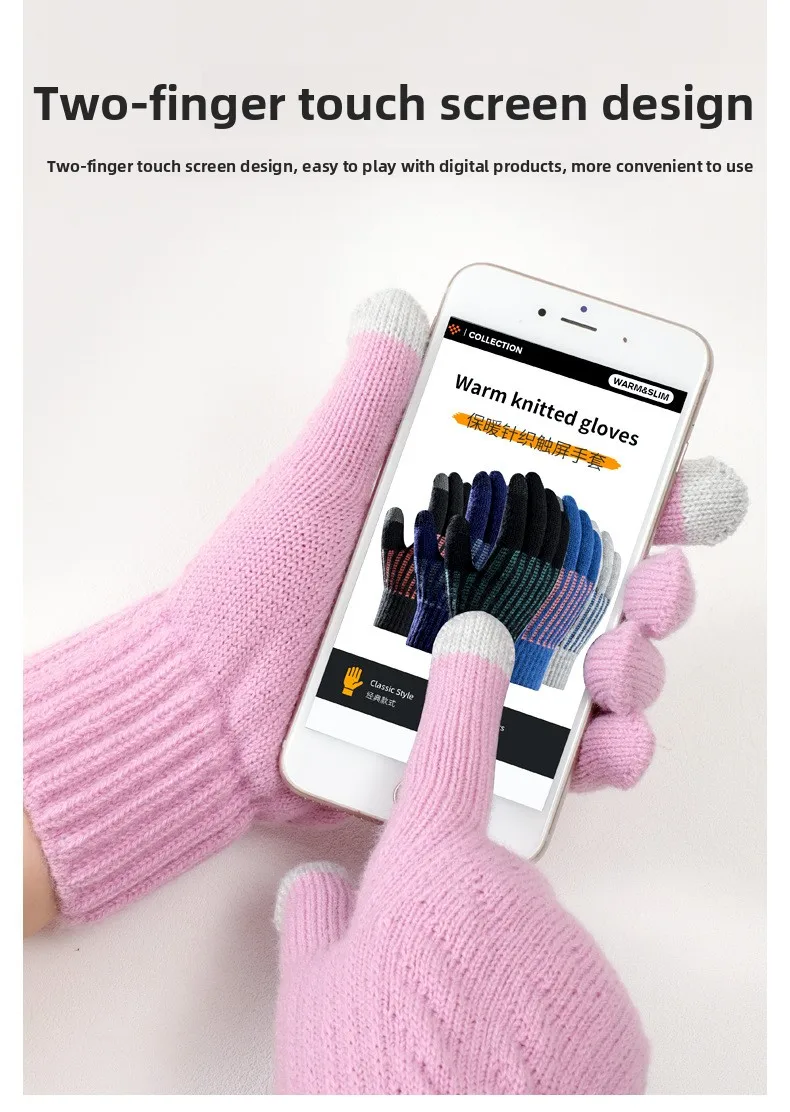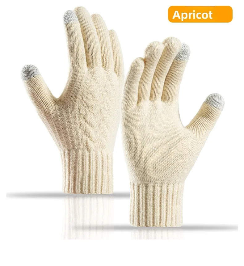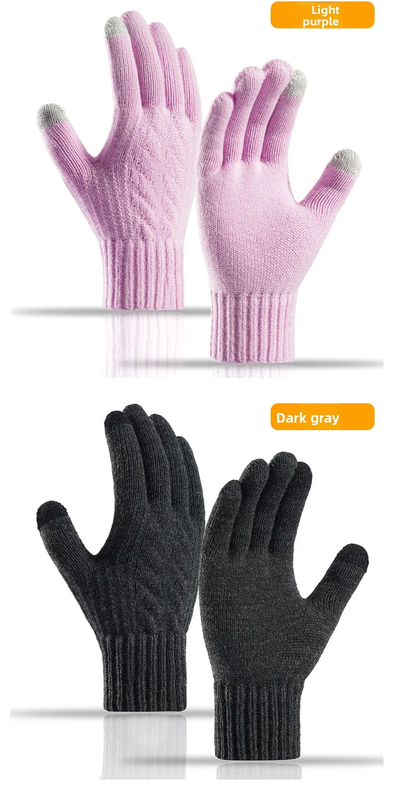 Christmas Reindeer Jacquard Knit Gloves with Plush Cuff Thick Warm Touchscreen Winter Soft Coldproof Warmth for Autumn Winter