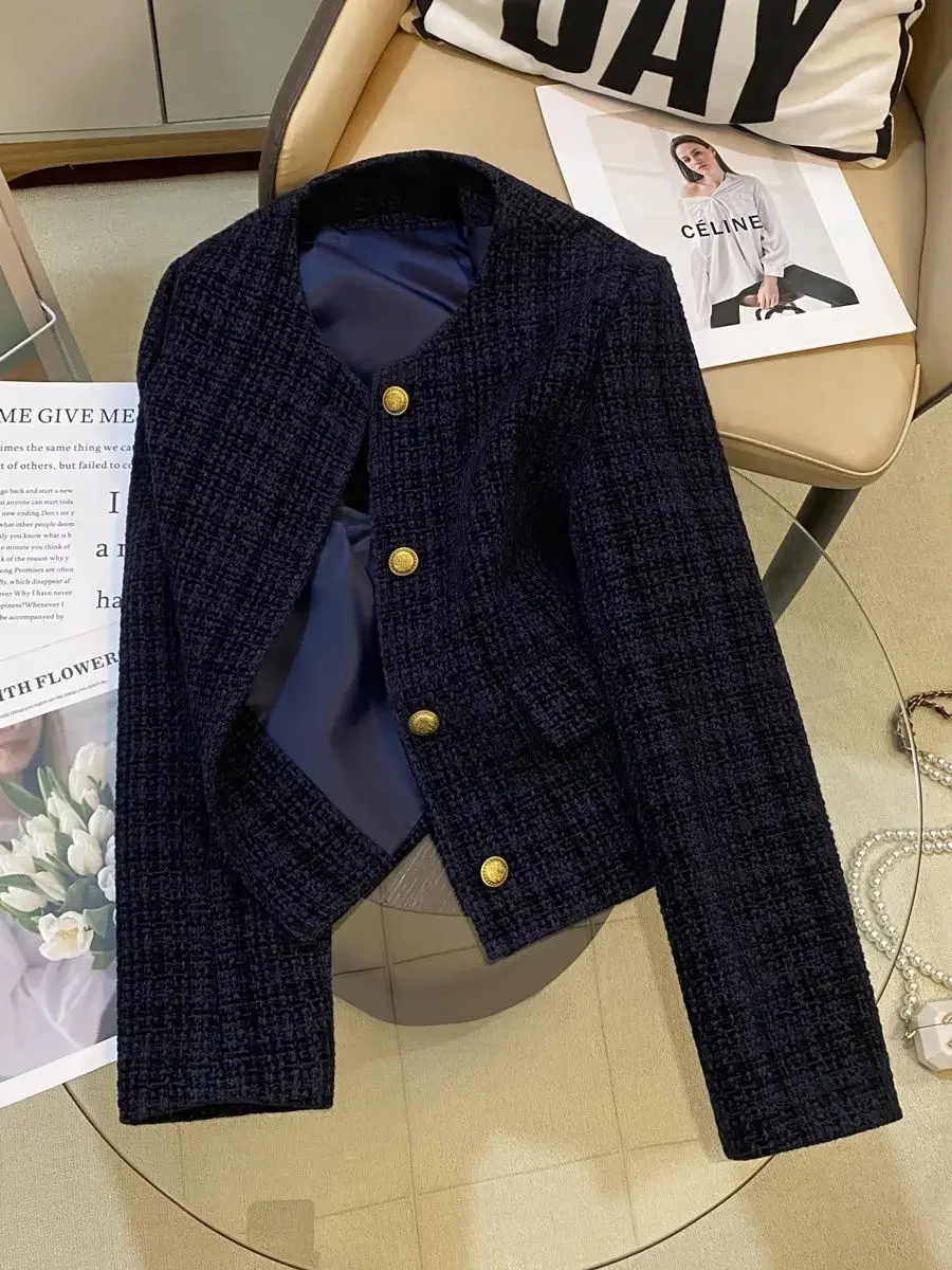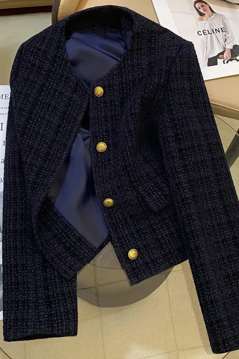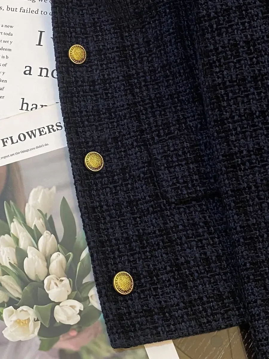 • Elegant Design : This navy blue jacket boasts an elegant design, perfect for adding a touch of sophistication to any outfit.