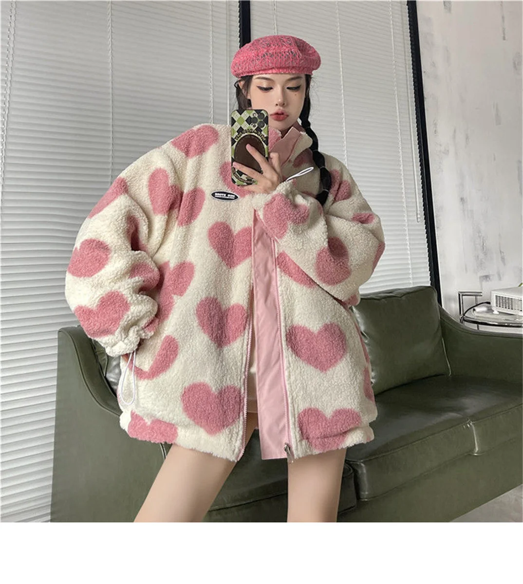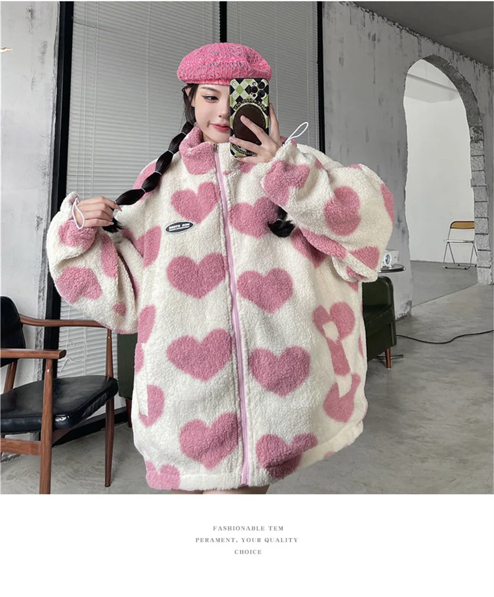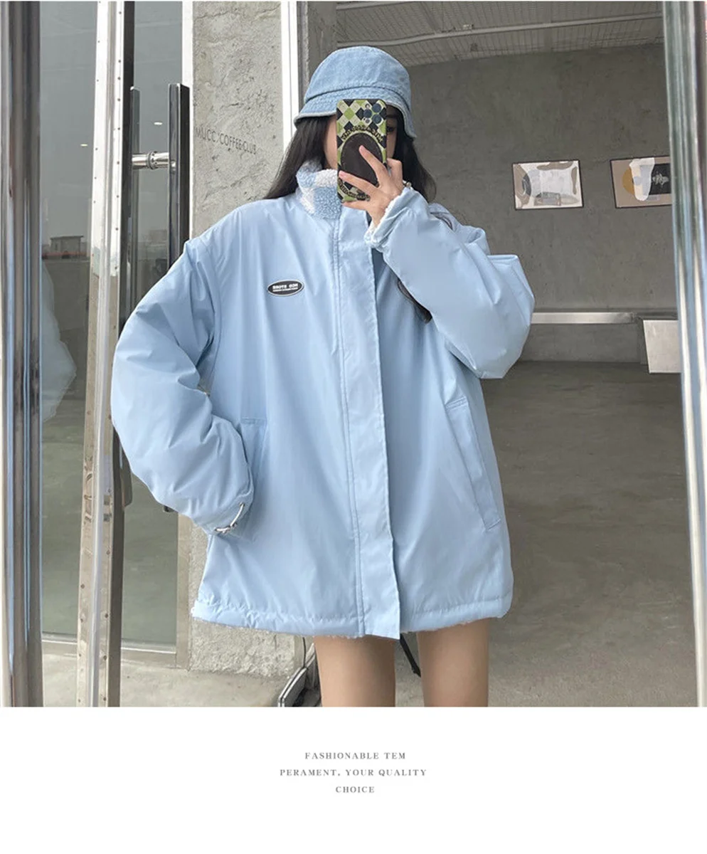 Price range: 32.78$ through 34.89$New Autumn/Winter Couple’s Stand Collar Cotton Coat Two-Sided Wear Love Lamb Wool Fleece Jacket