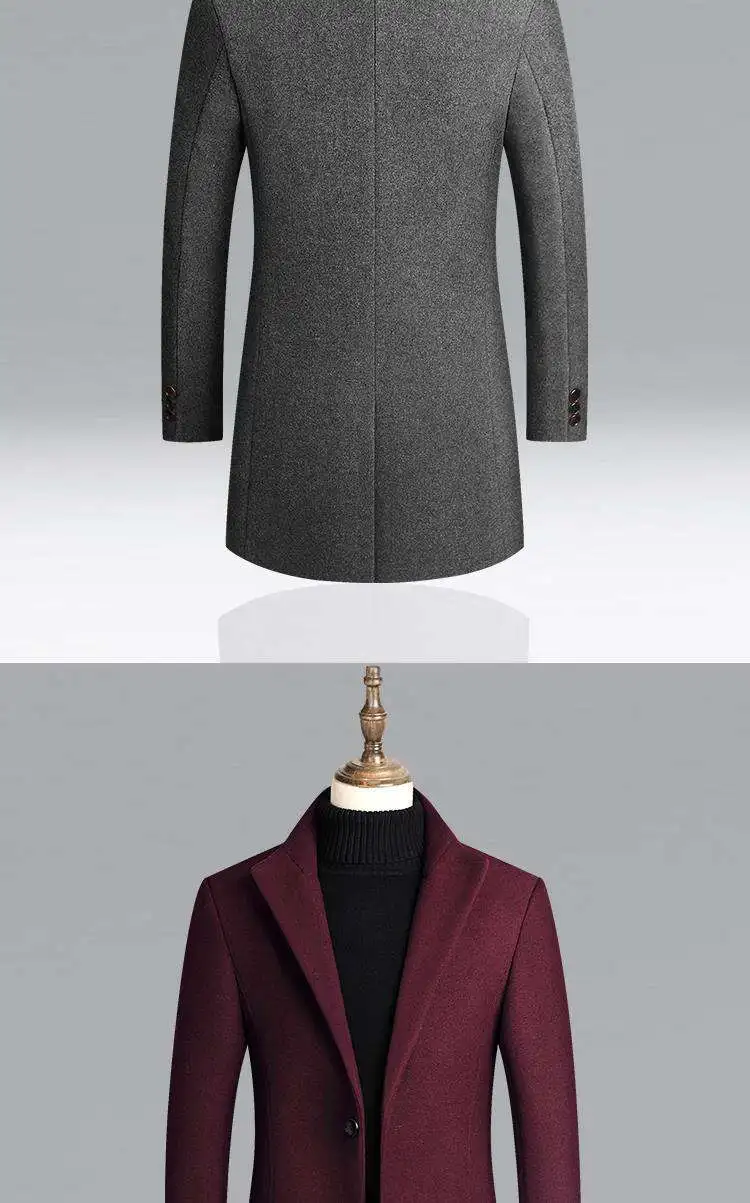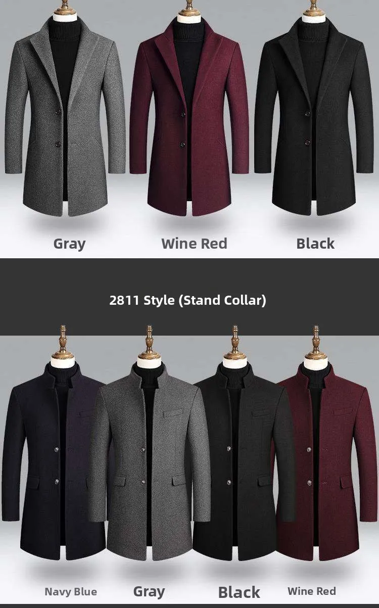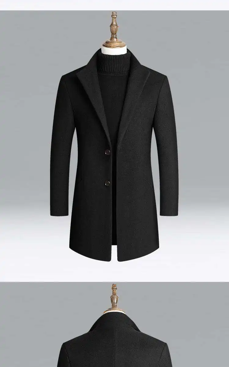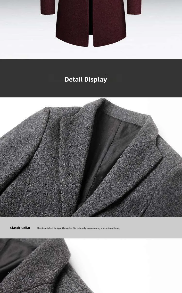 New Autumn Winter Men’s Woolen Coat Casual Slim Fit Long Length Tailored Lapel Jaet for Men Faionable