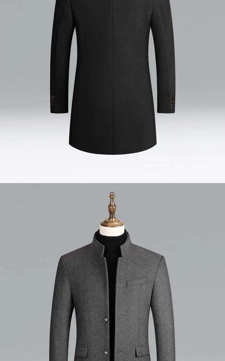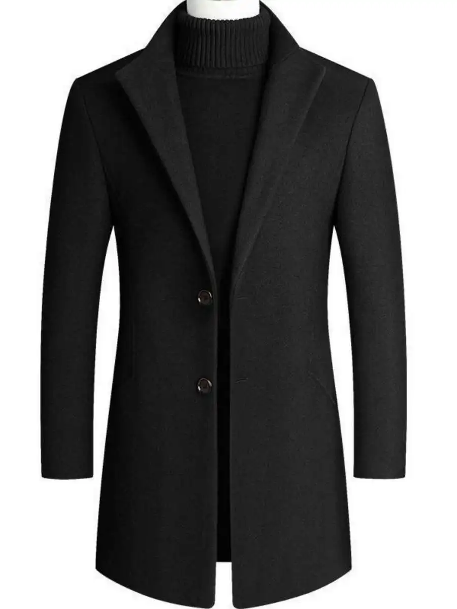New Autumn Winter Men's Woolen Coat Casual Slim Fit Long Length Tailored Lapel Jaet for Men Faionable Ele Sle