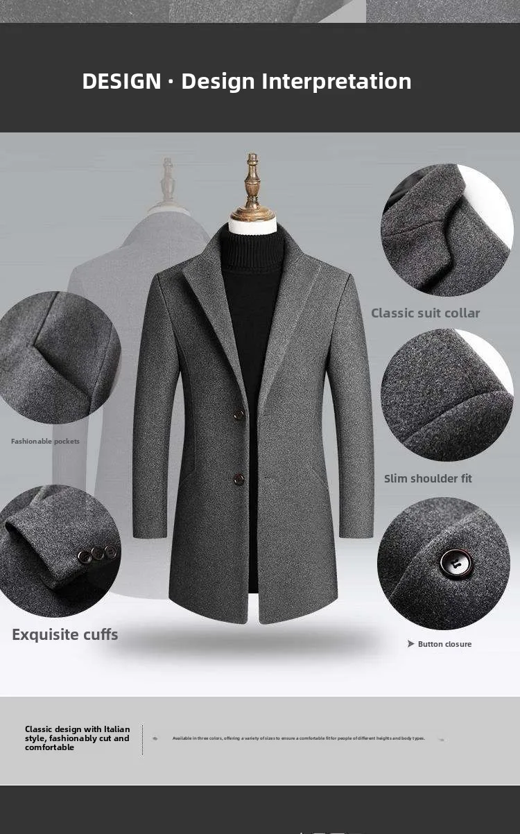The new autumn winter tweed men’s coat features a tailored fit, hugging your body for a sleek and stylish look.