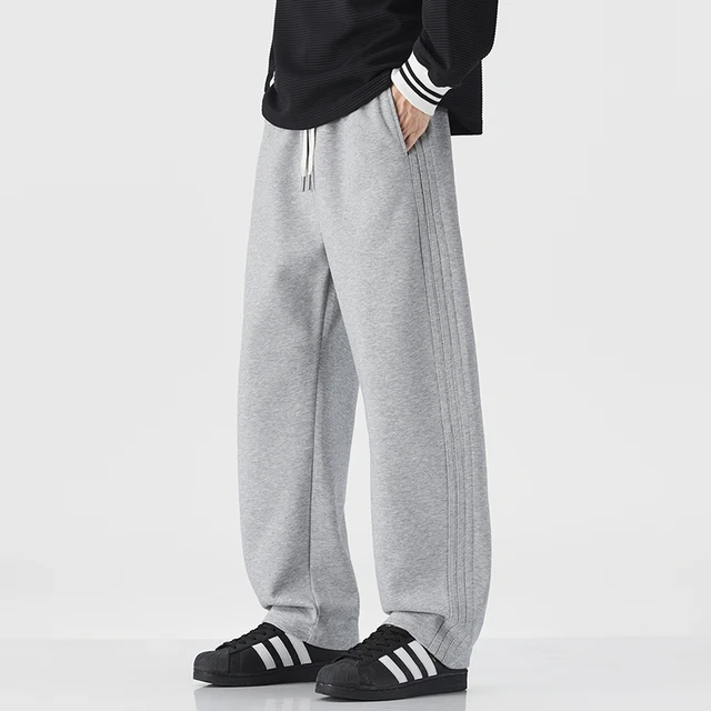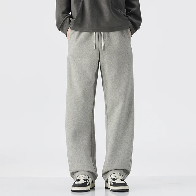 Loose, straight-leg gray trousers. Soft, everyday pants. Unisex sweatpants. All-season cotton streetwear. pants men