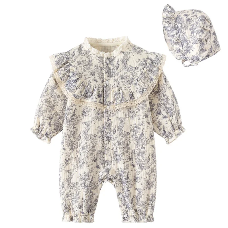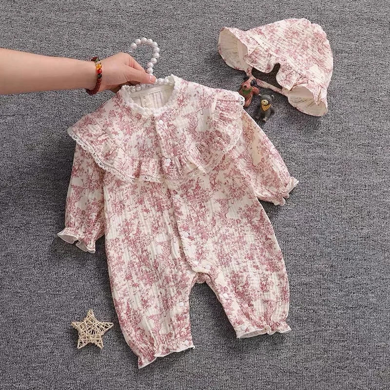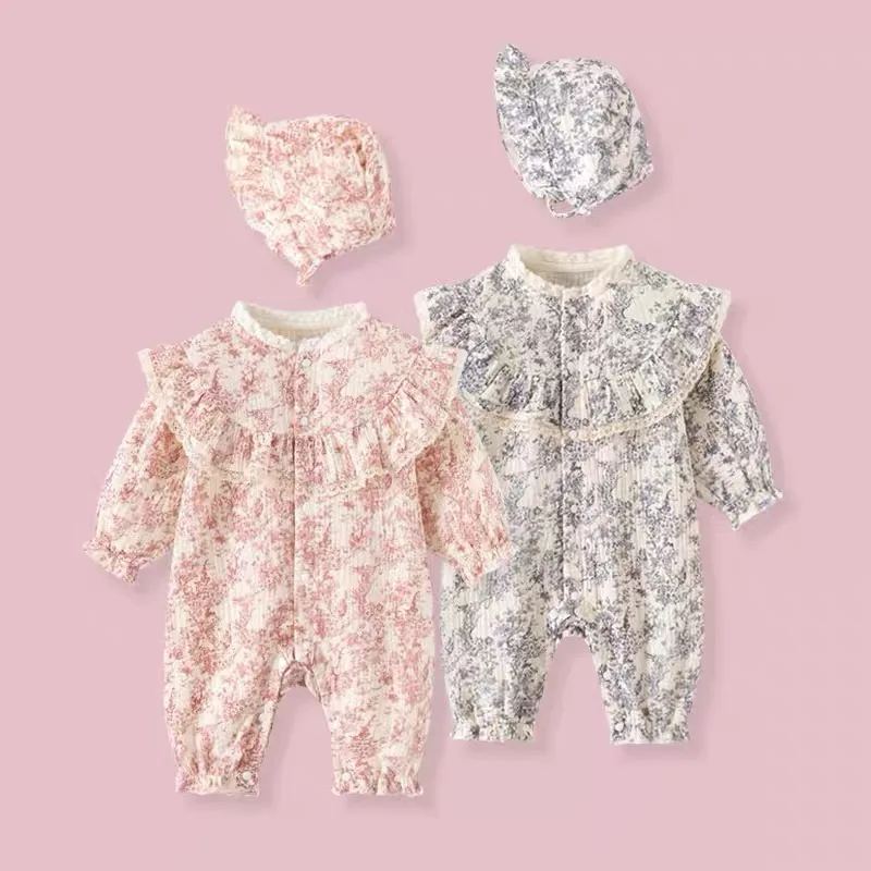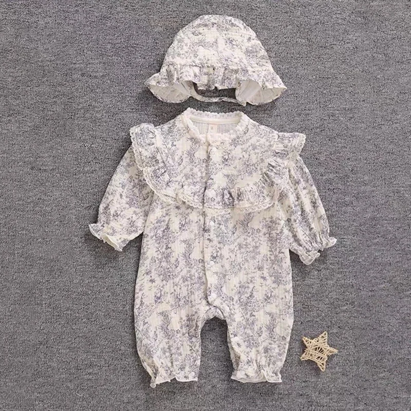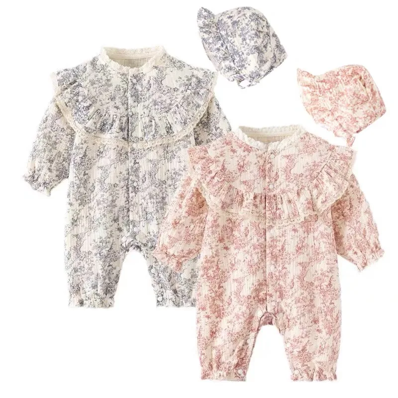New Autumn Infant Rompers Baby Girl Jumpsuit Long Sleeved Cotton Floral Printing Newborn Baby Girl Jumpsuit Children Clothes