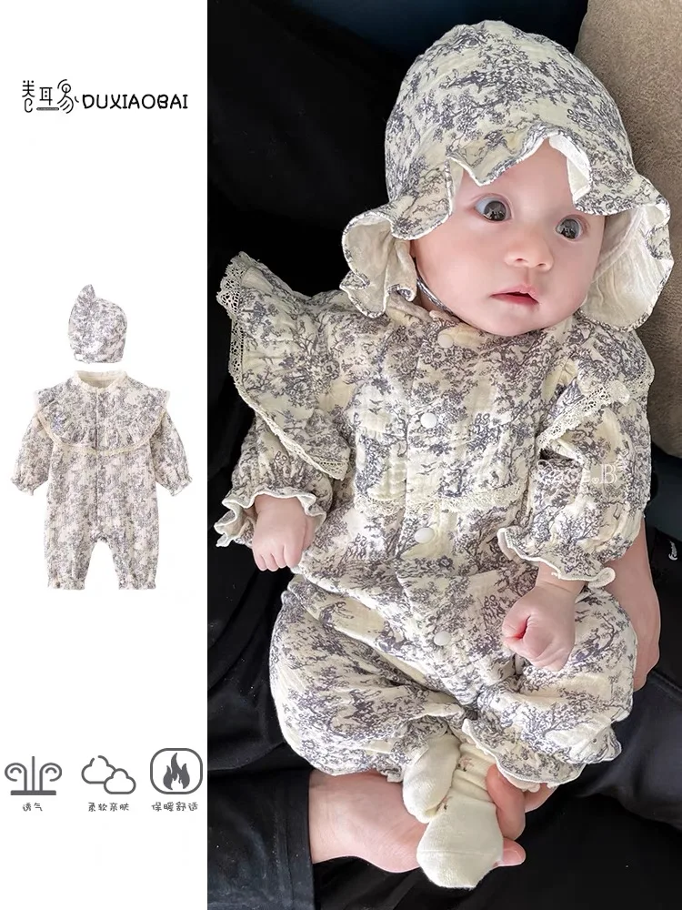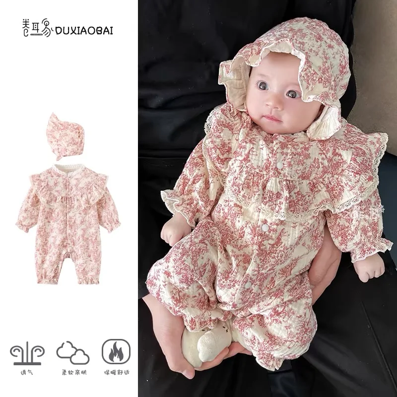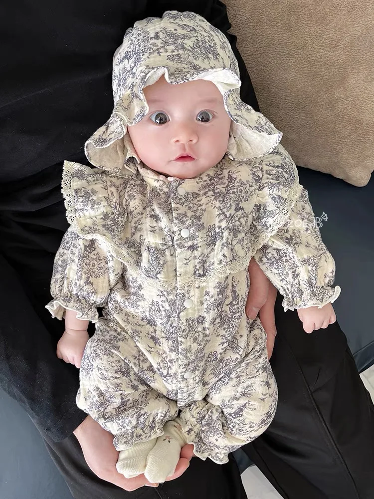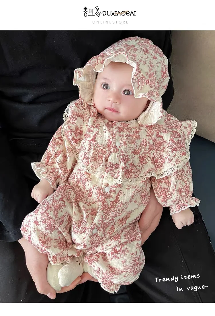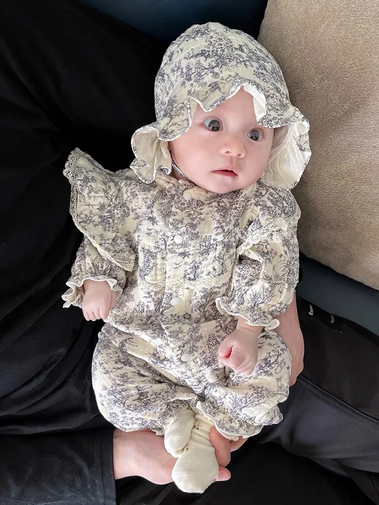 New Autumn Infant Rompers Baby Girl Jumpsuit Long Sleeved Cotton Floral Printing Newborn Baby Girl Jumpsuit Children Clothes