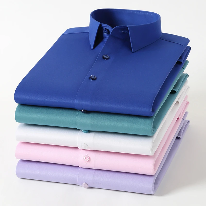 New Bamboo Fiber Anti-Wrinkle Mens Shirts Long Sleeve Dress Shirts For Slim Fit Camisa Social Business