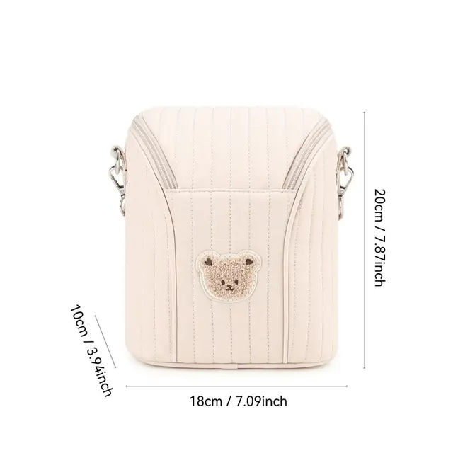 -Cute Bear Design:Adorned with a sweet teddy bear patch, this mommy bag for baby bottles has an adorable, stylish look. It adds a touch of cuteness while being a practical accessory for parents.