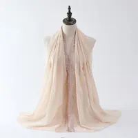 New Bubble Chiffon Hijab Scarves Women Muslim Shawls Beaded Headscarf Wraps Turban Islam Clothing Solid