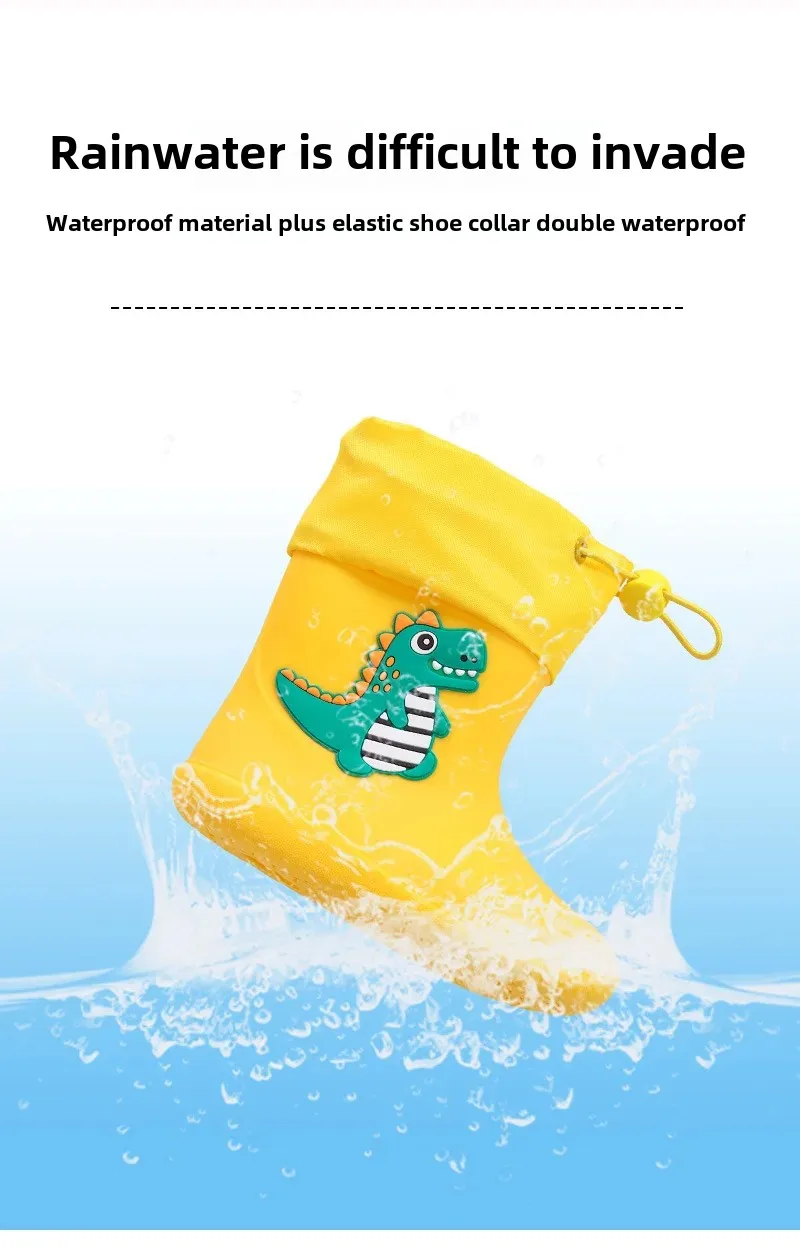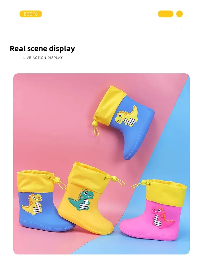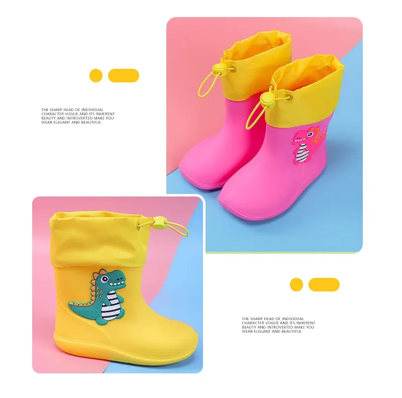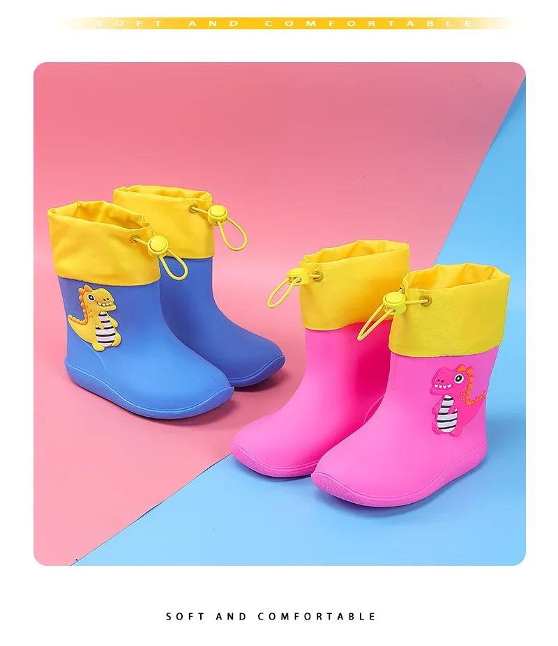 • Cartoon Dinosaur Design : Featuring a fun cartoon dinosaur design, these boots add a playful touch to your child’s rainy day attire.