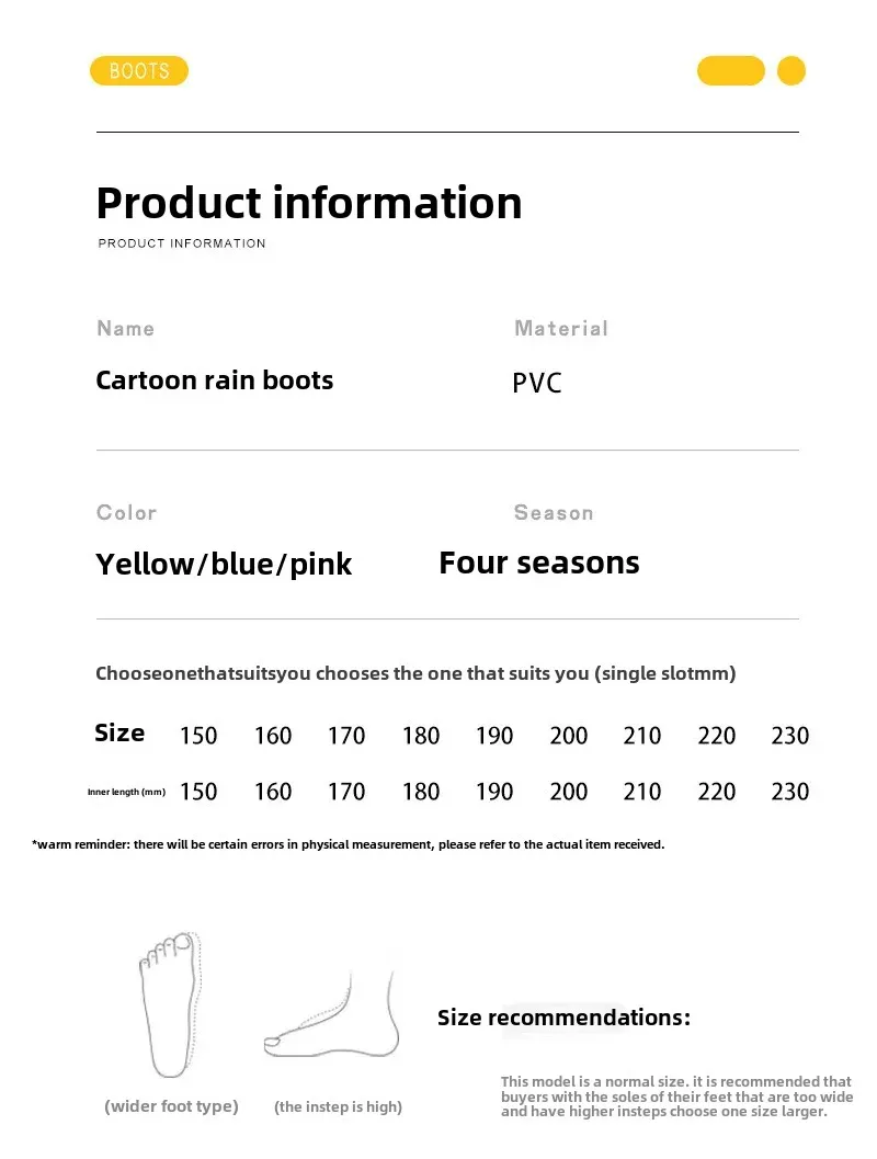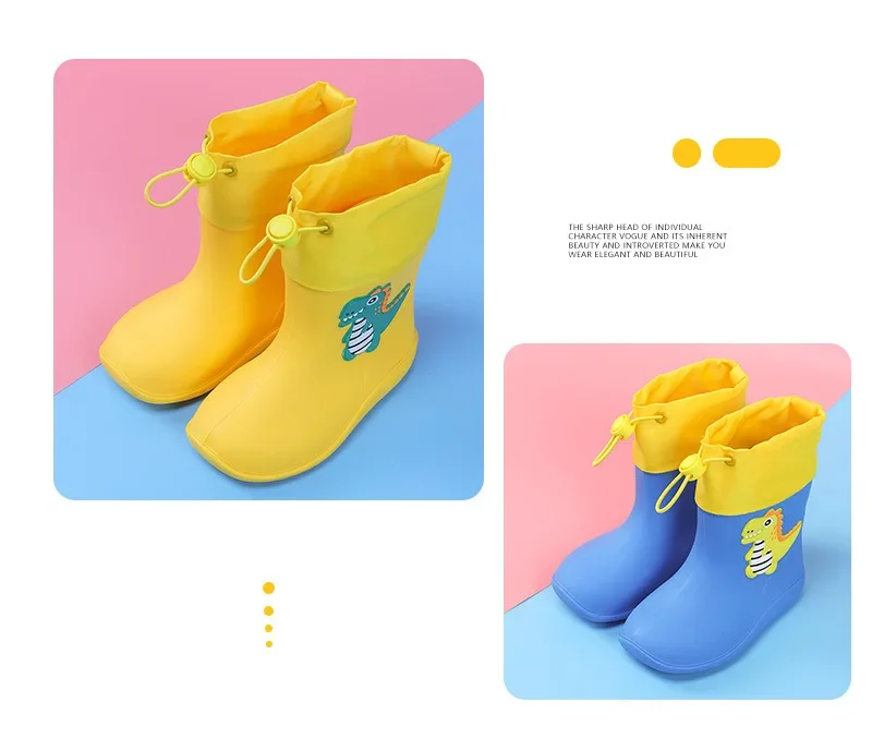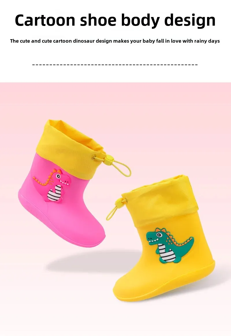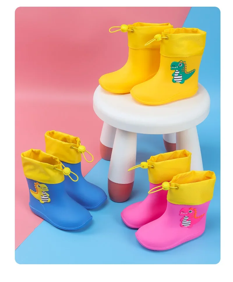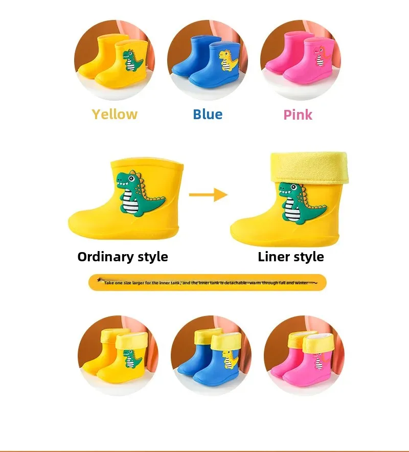 • Cartoon Dinosaur Design : Featuring a fun cartoon dinosaur design, these boots add a playful touch to your child’s rainy day attire.