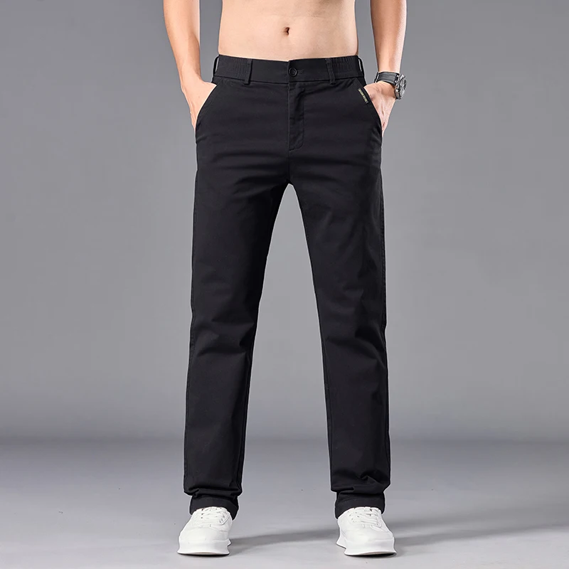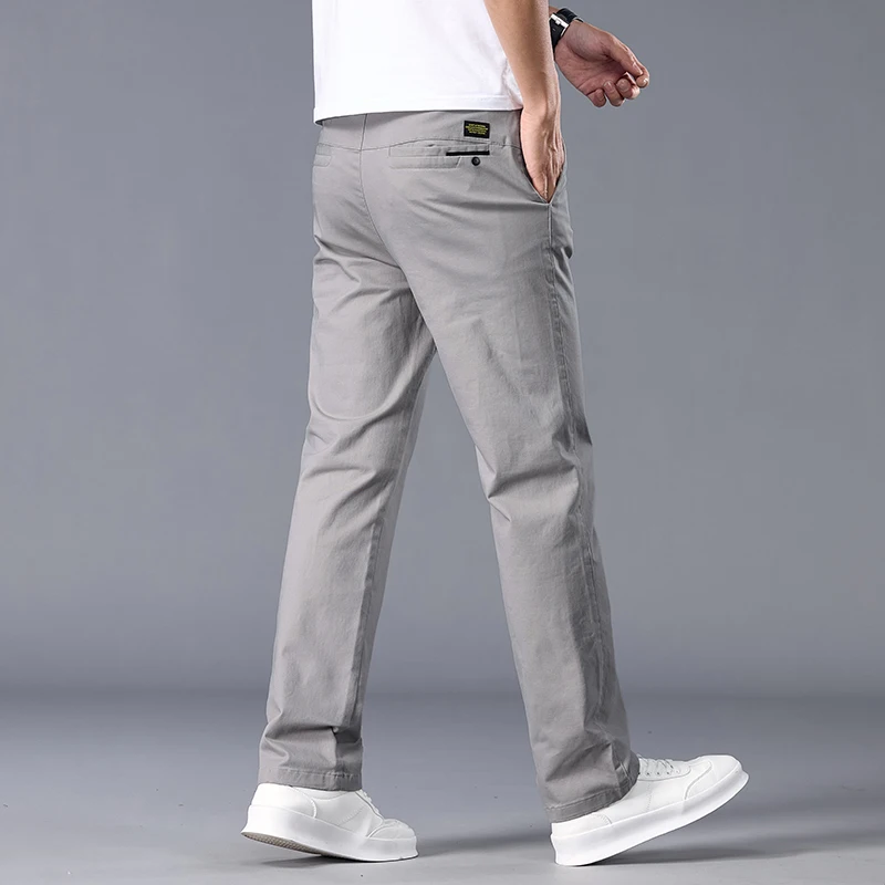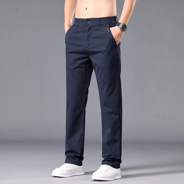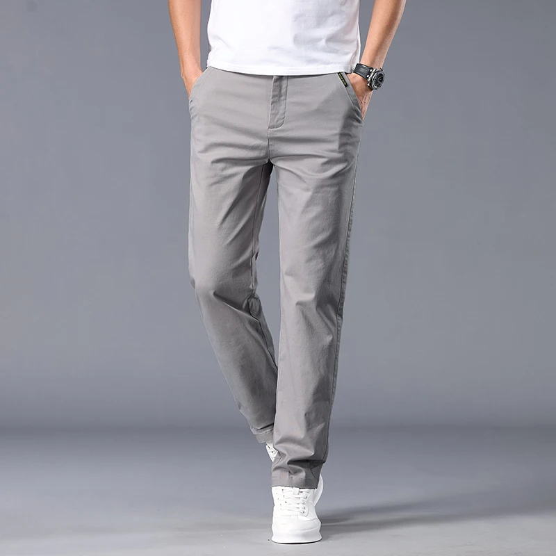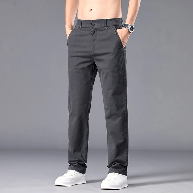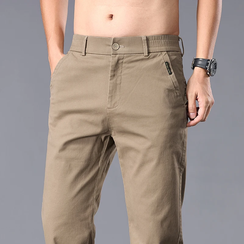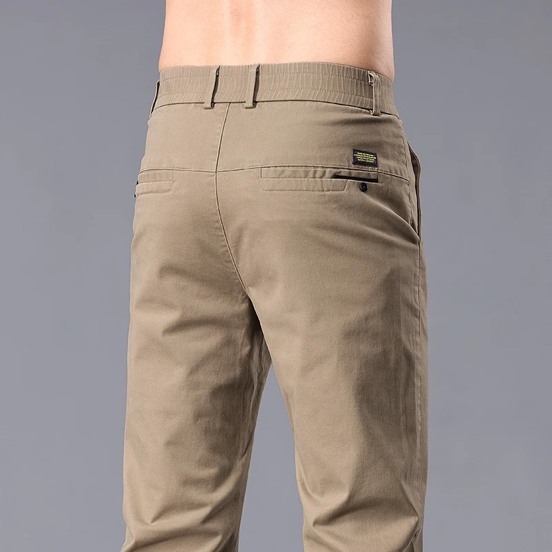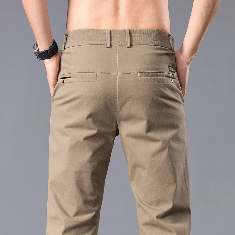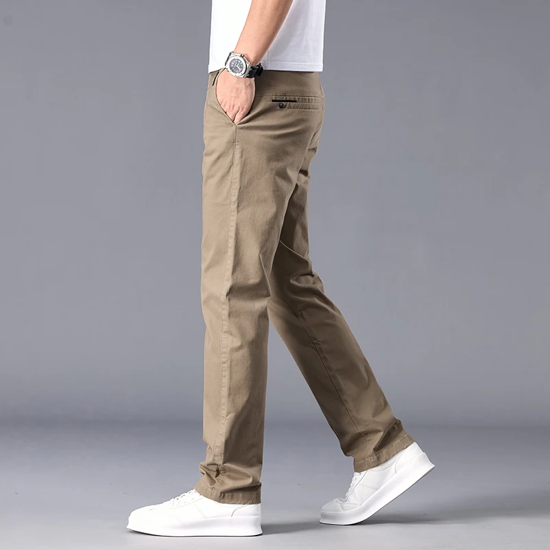 New Casual Pants Men Straight Fit Stretch Autumn Chino Trousers Male Formal Work Business Dress Khaki