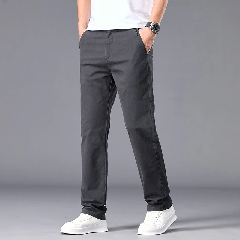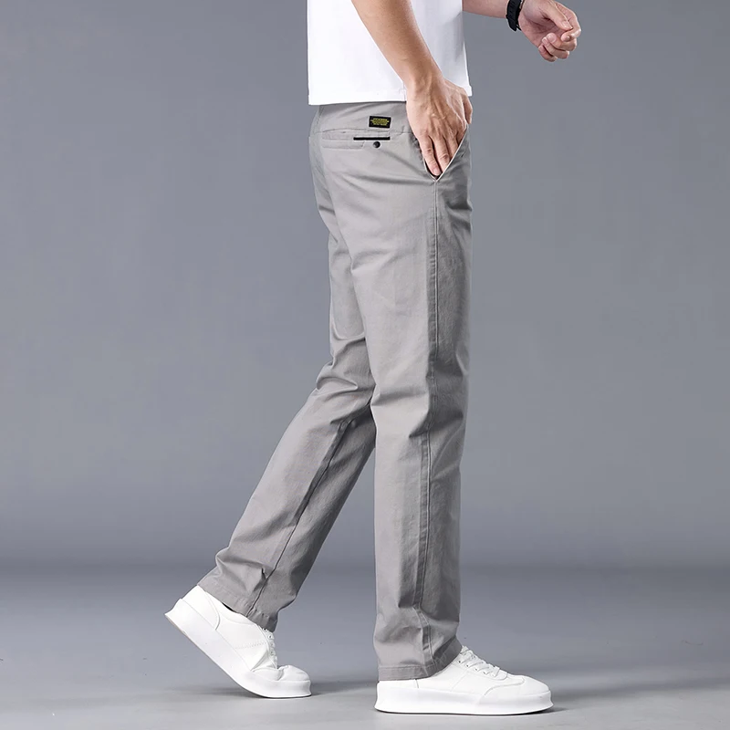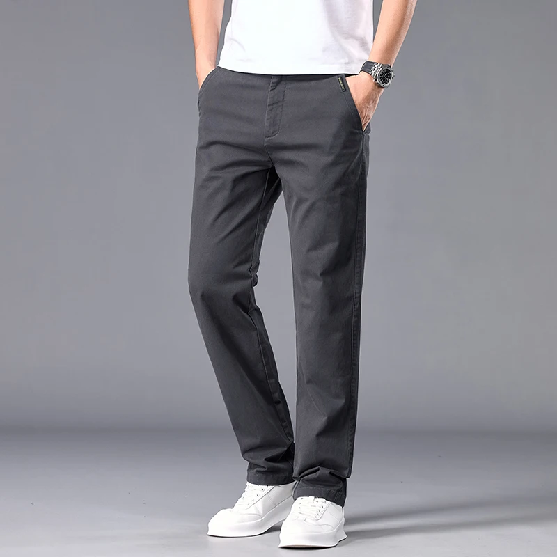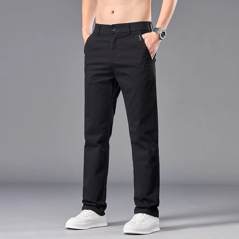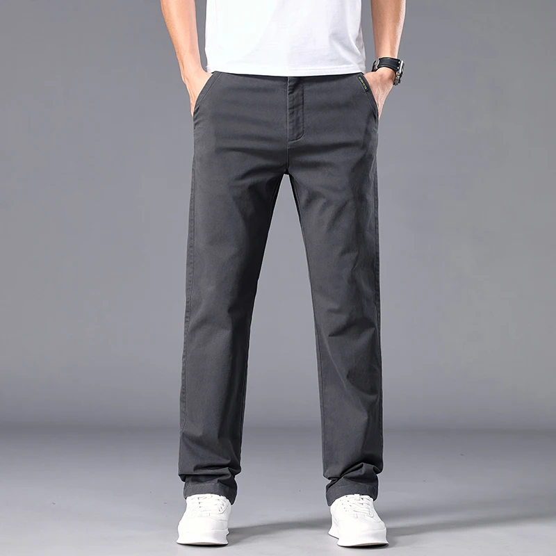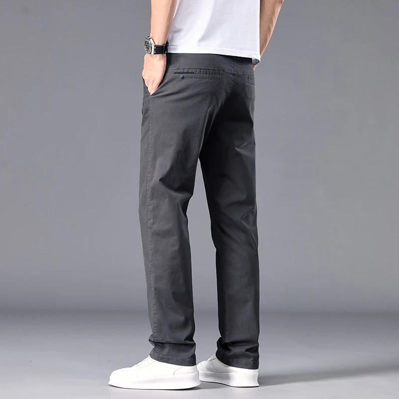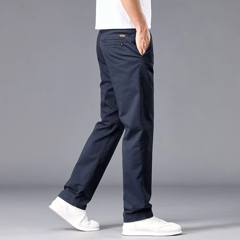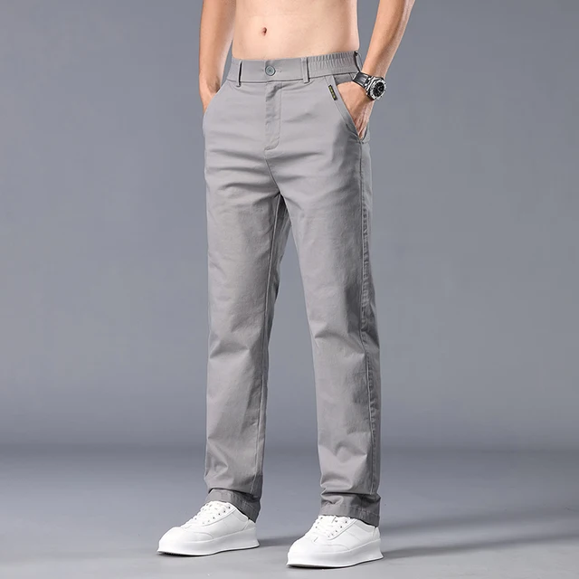 New Casual Pants Men Straight Fit Stretch Autumn Chino Trousers Male Formal Work Business Dress Khaki