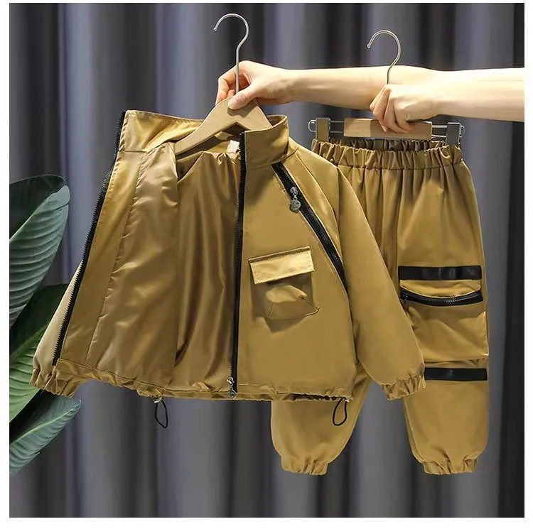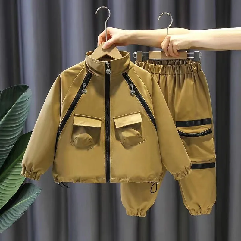 New Children's Workwear Set 2024 Boys Spring and Autumn Korean Fashion Zipper Set, Big Kids Sports Two Piece Set 2-10Y