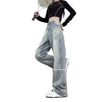 The high-waisted design of these jeans accentuates the waistline, creating an illusion of height and slimming effect, perfect for those looking to enhance their figure.