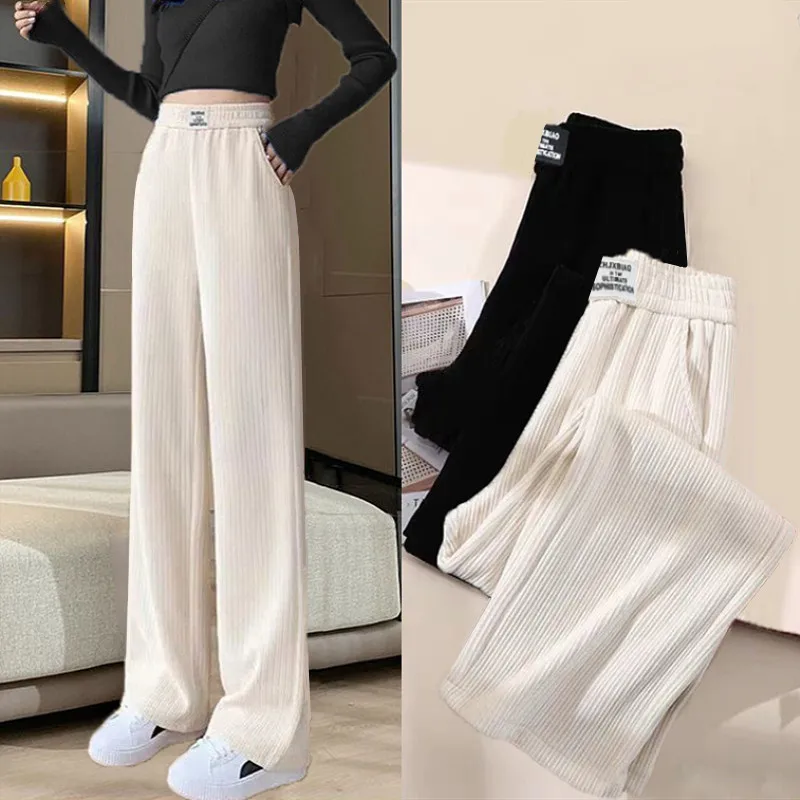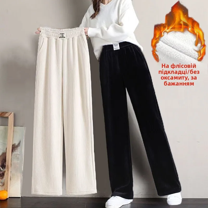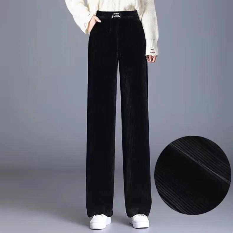 New Corduroy Wide Leg Ponies Women Autumn Winter Warm Outerwear Cotton Fce Lined Sports Loose Straight