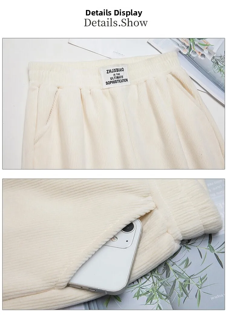 New Corduroy Wide Leg Ponies Women Autumn Winter Warm Outerwear Cotton Fce Lined Sports Loose Straight Casual Joggers