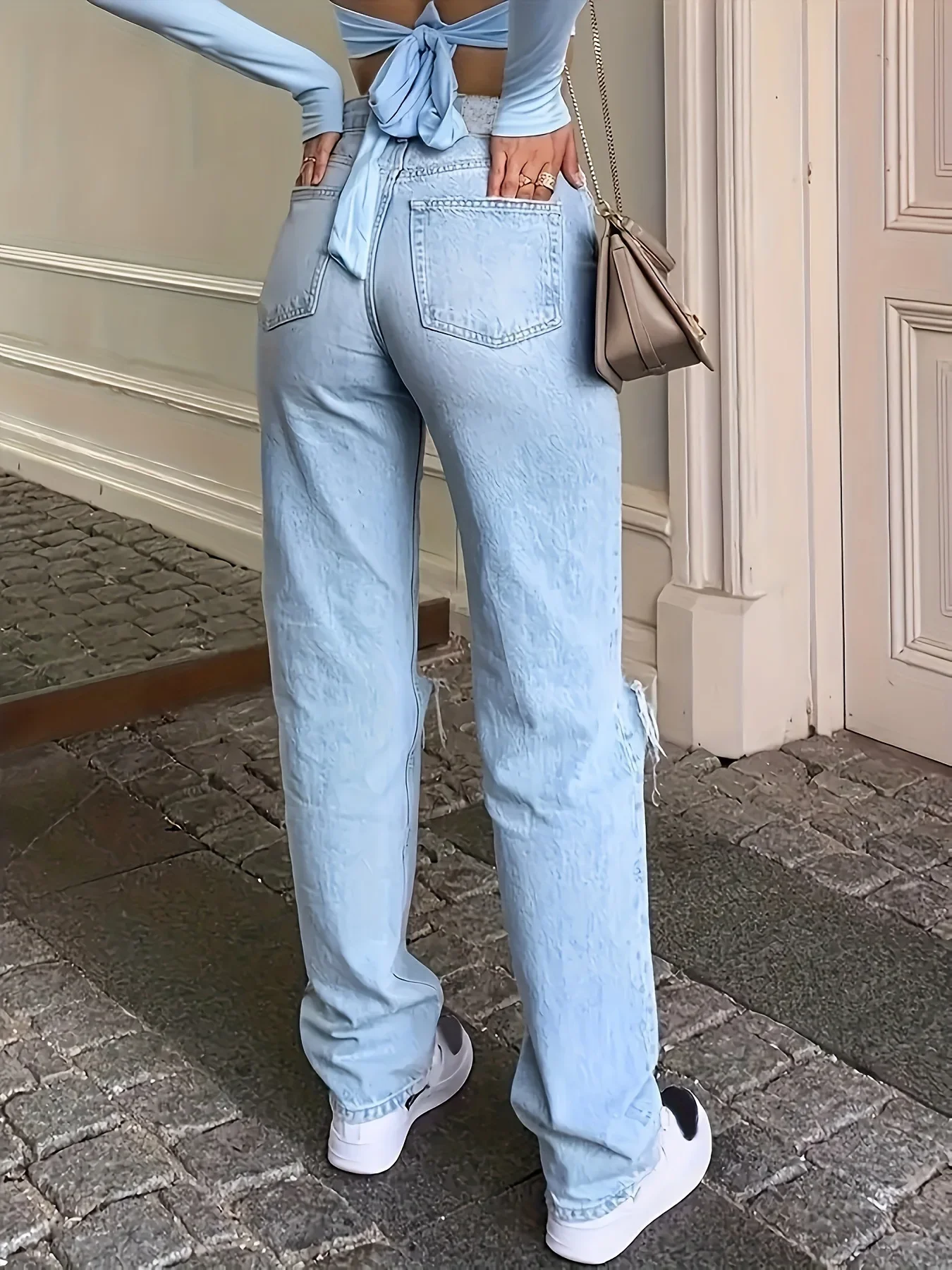 • High Waist Design : The high waist design of these jeans accentuates your figure, providing a flattering silhouette for any body type.