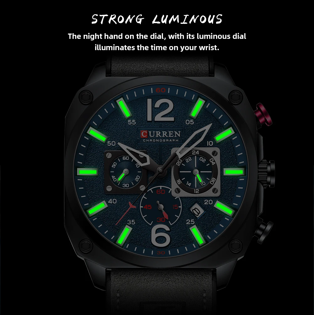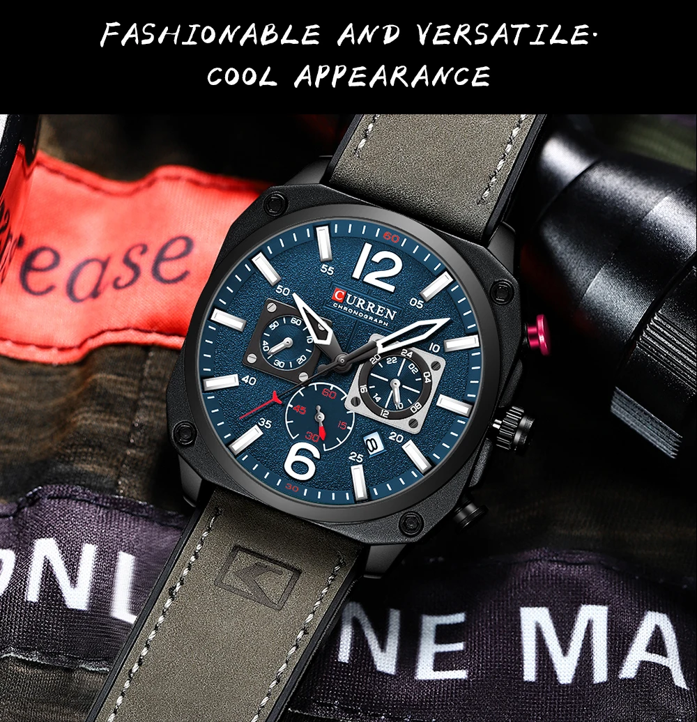 New CURREN Brand Watch Men Leather Sports Watches Men’s Army Military Quartz Wristwatch Chronograph