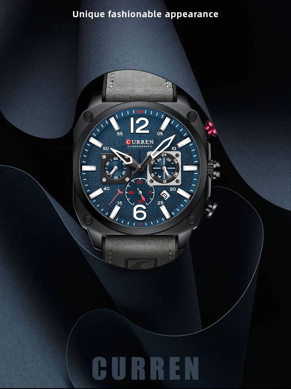1.Chronograph watch, seconds small dial, minute small dial, 24 hours small dial.
