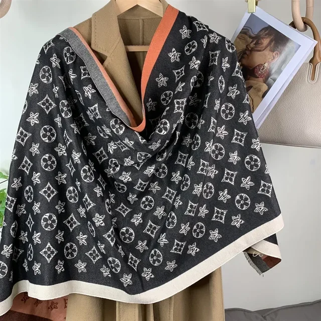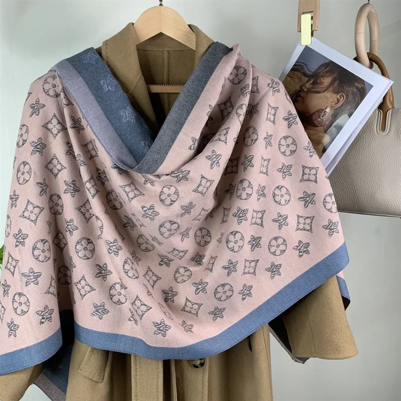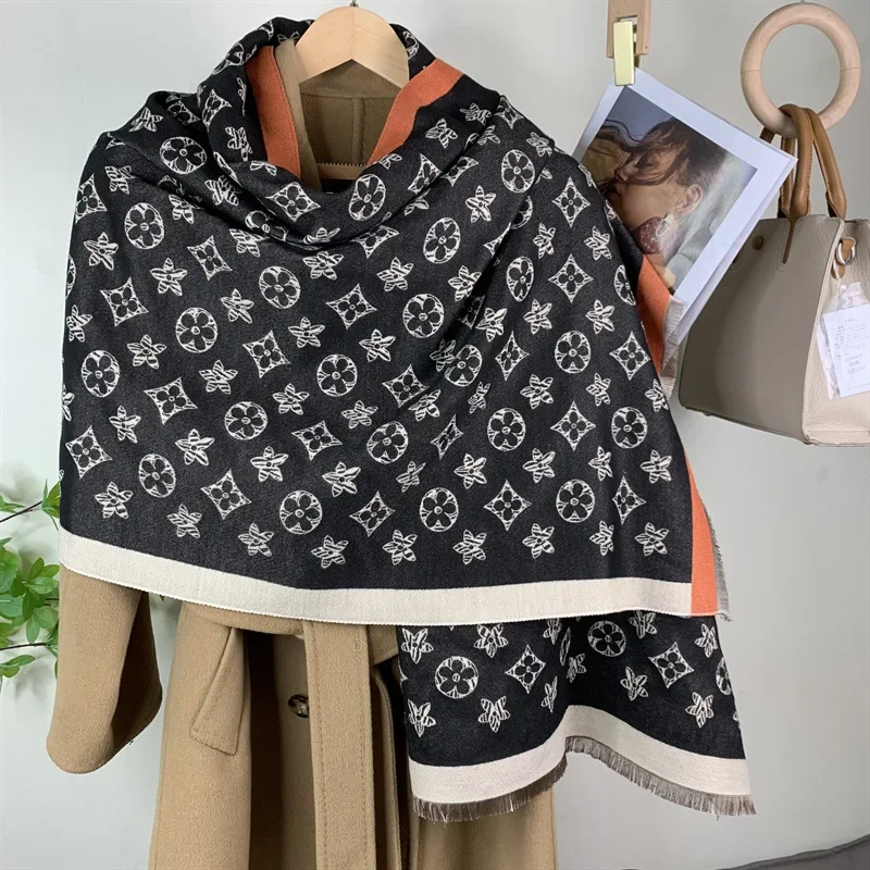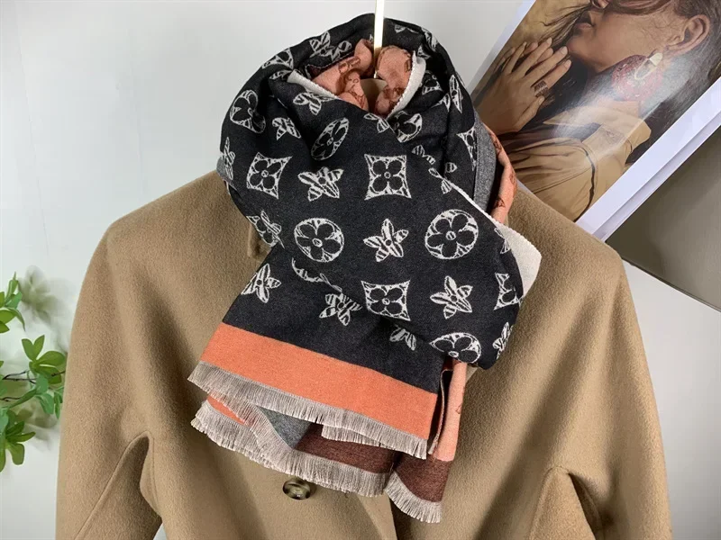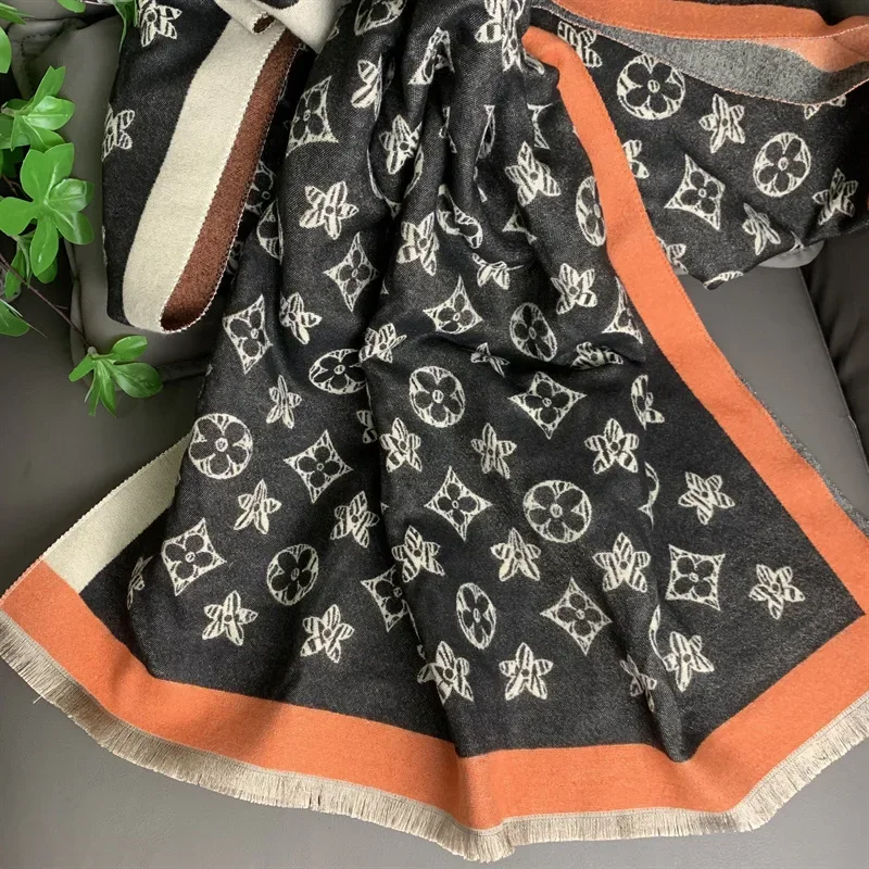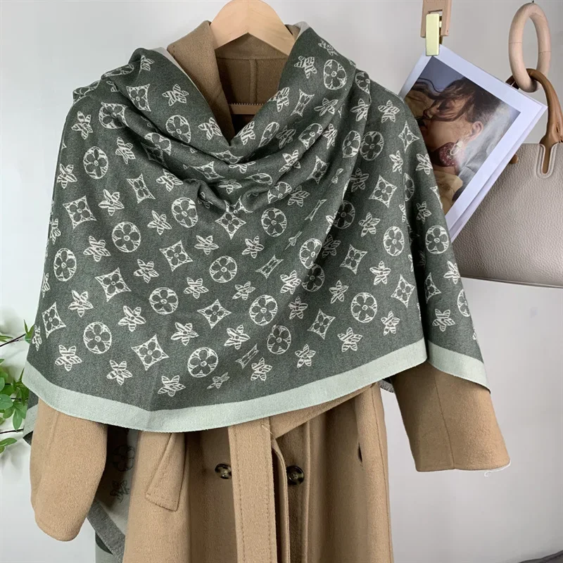 New Double-sided Imitation Cashmere Versatile Lucky Grass Winter Scarf Internet Celebrities Women's Warm Shawl Dual-purpose