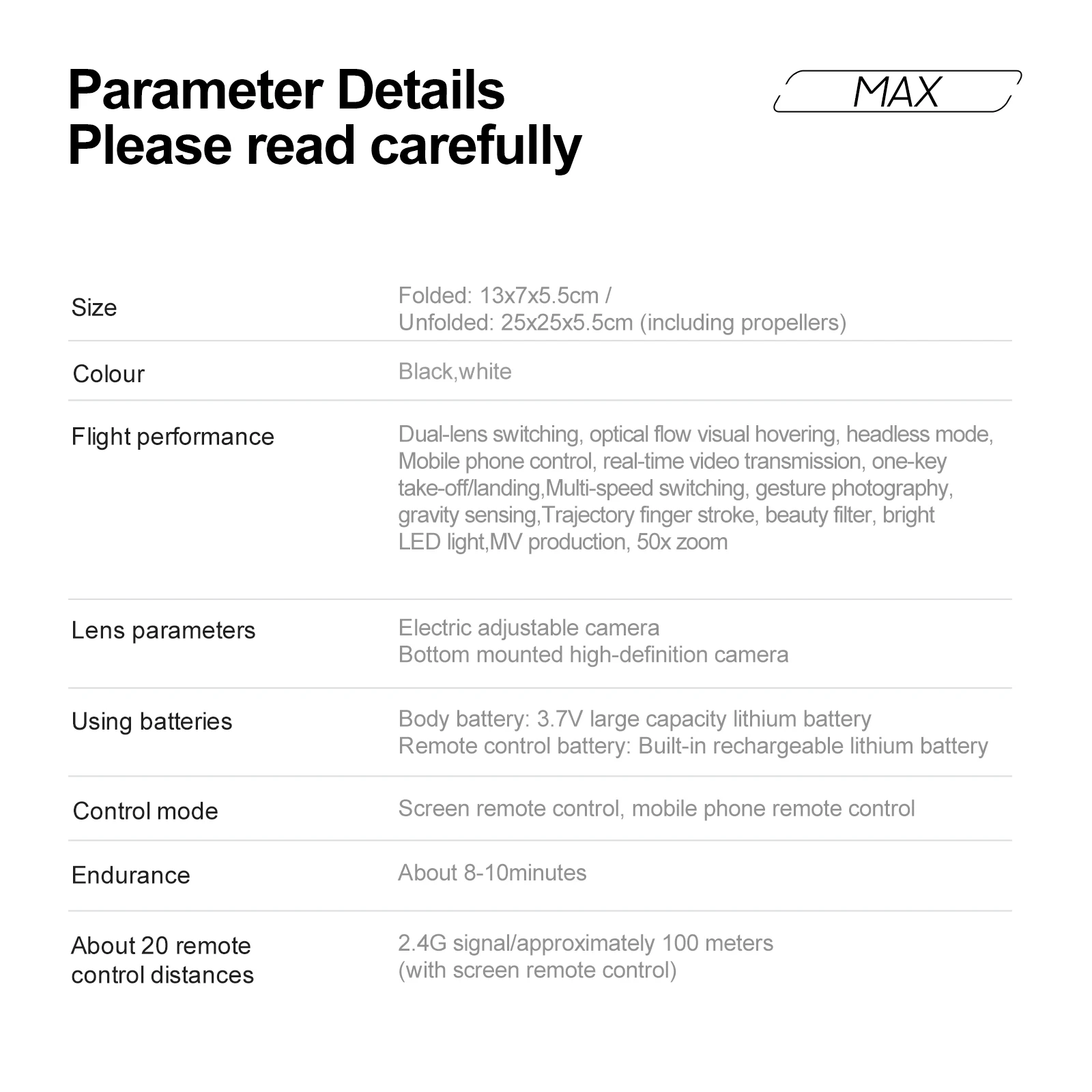 | Drone Weight | 139g |