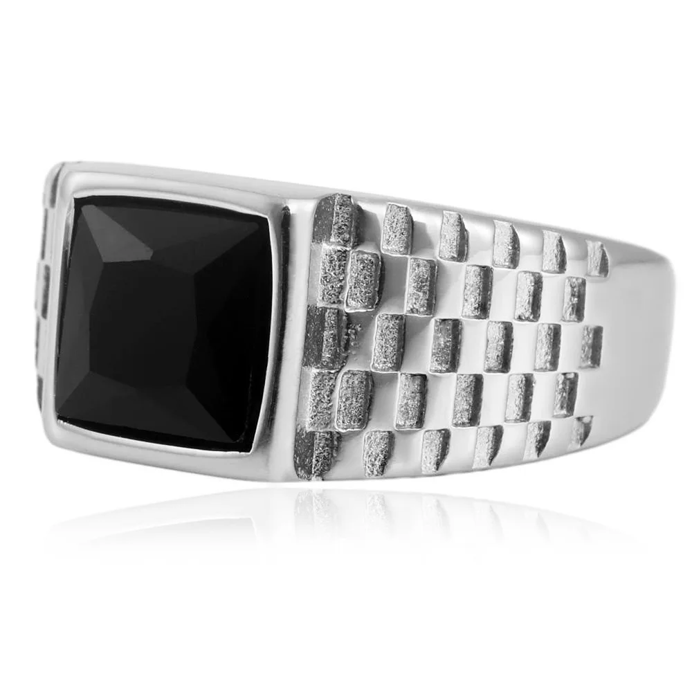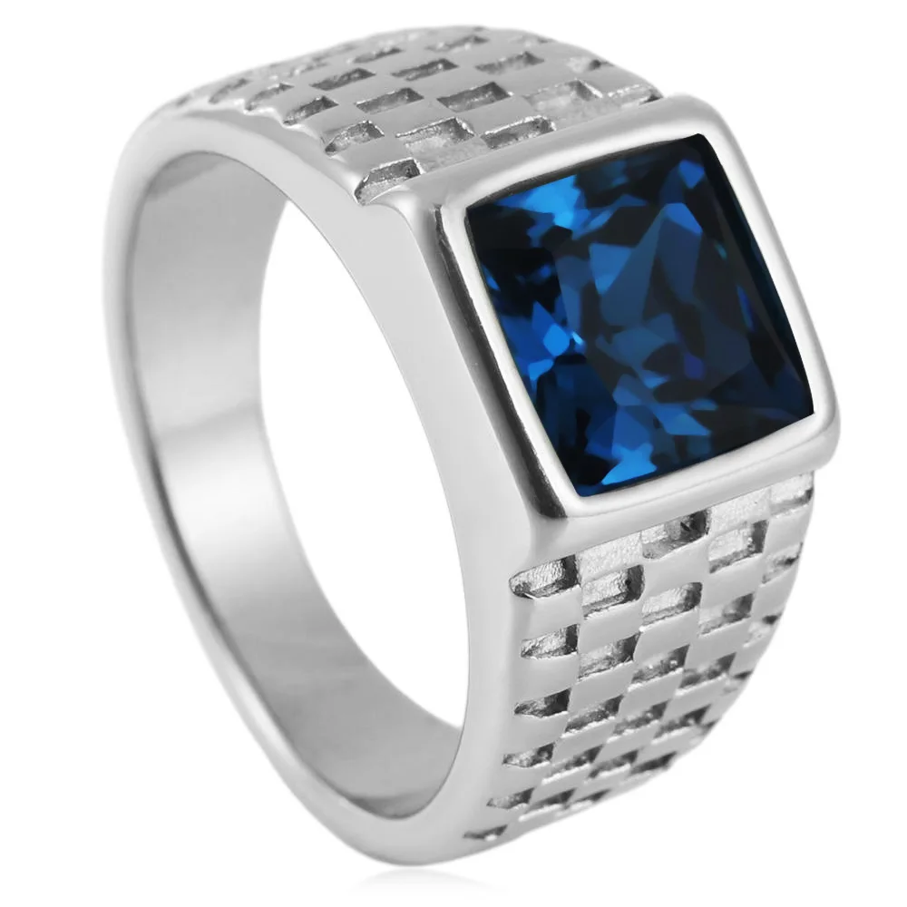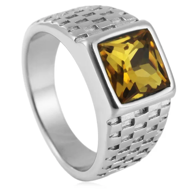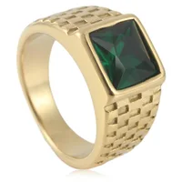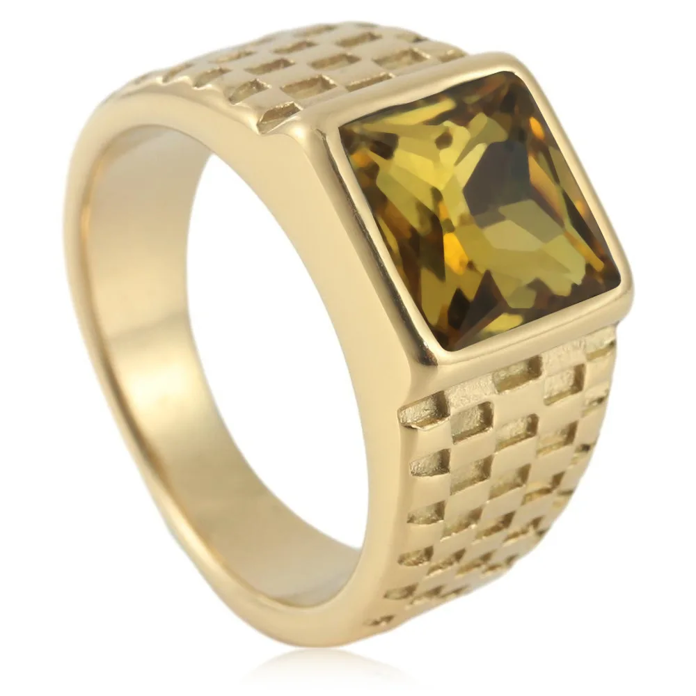 New European and American simple gold gemstone titanium steel ring for men and women