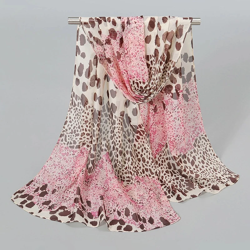 New Fashion Chiffon Leopard Print Design Women Silk Scarf Shawl Elegant Headscarf Bandage Hijabs Muslim