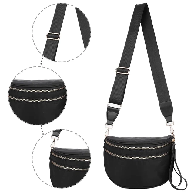 Nylon Spacious Fanny Packs with Adjustable and Removable Strap Solid Sling Bag Sling Shoulder Bag Wallets Purses for Women
