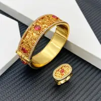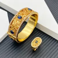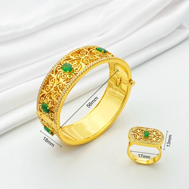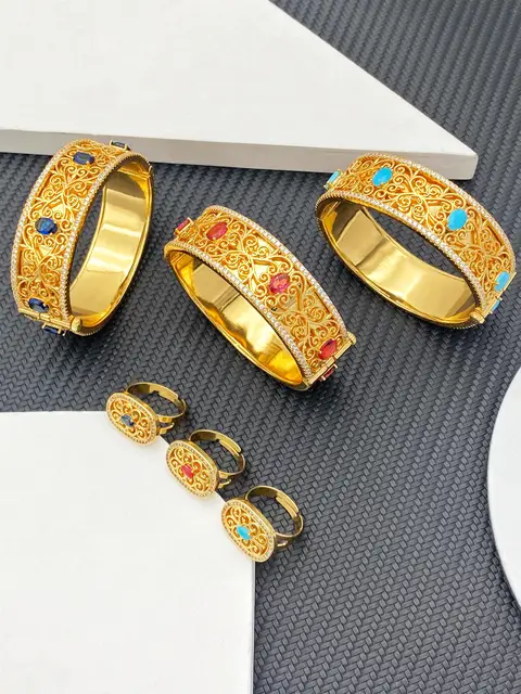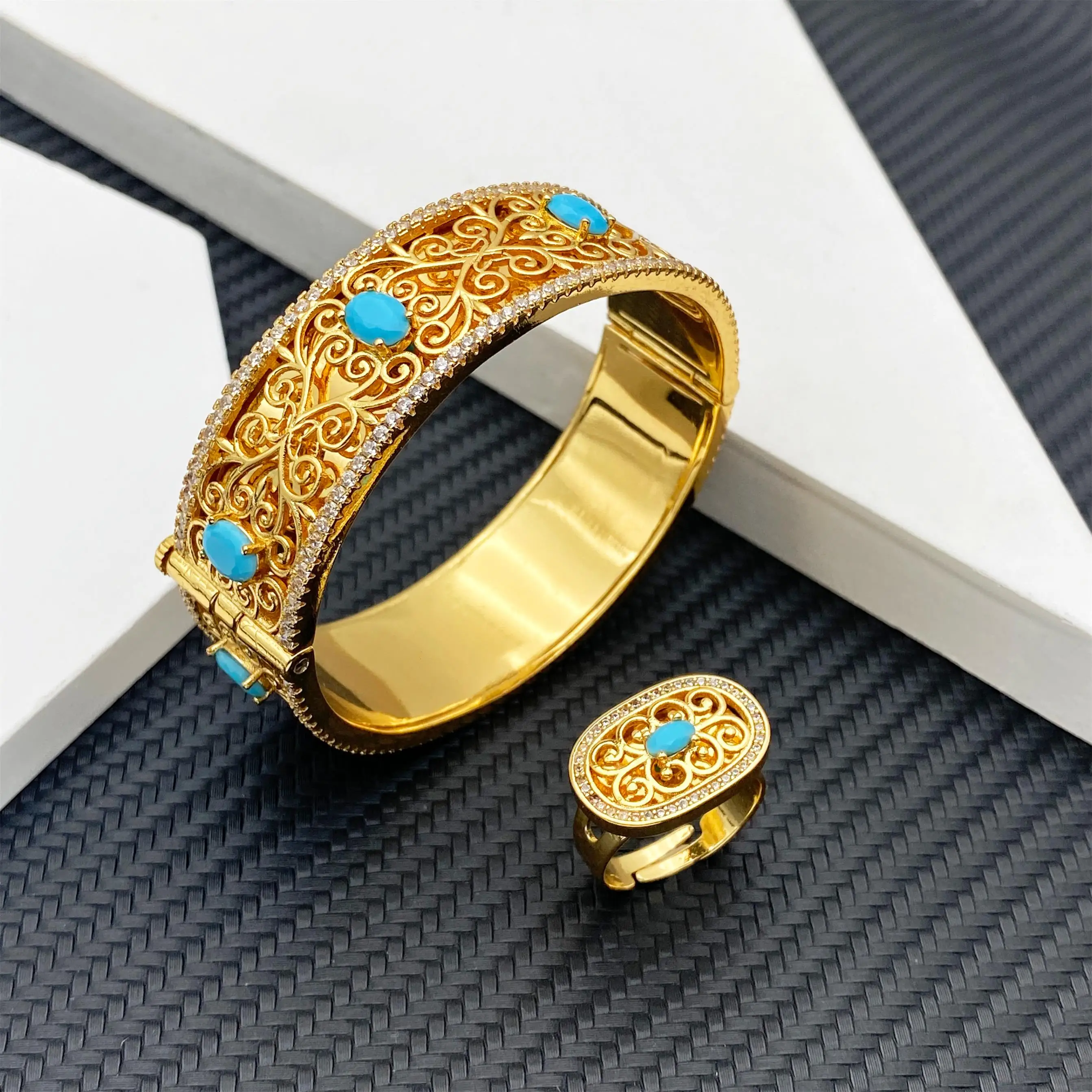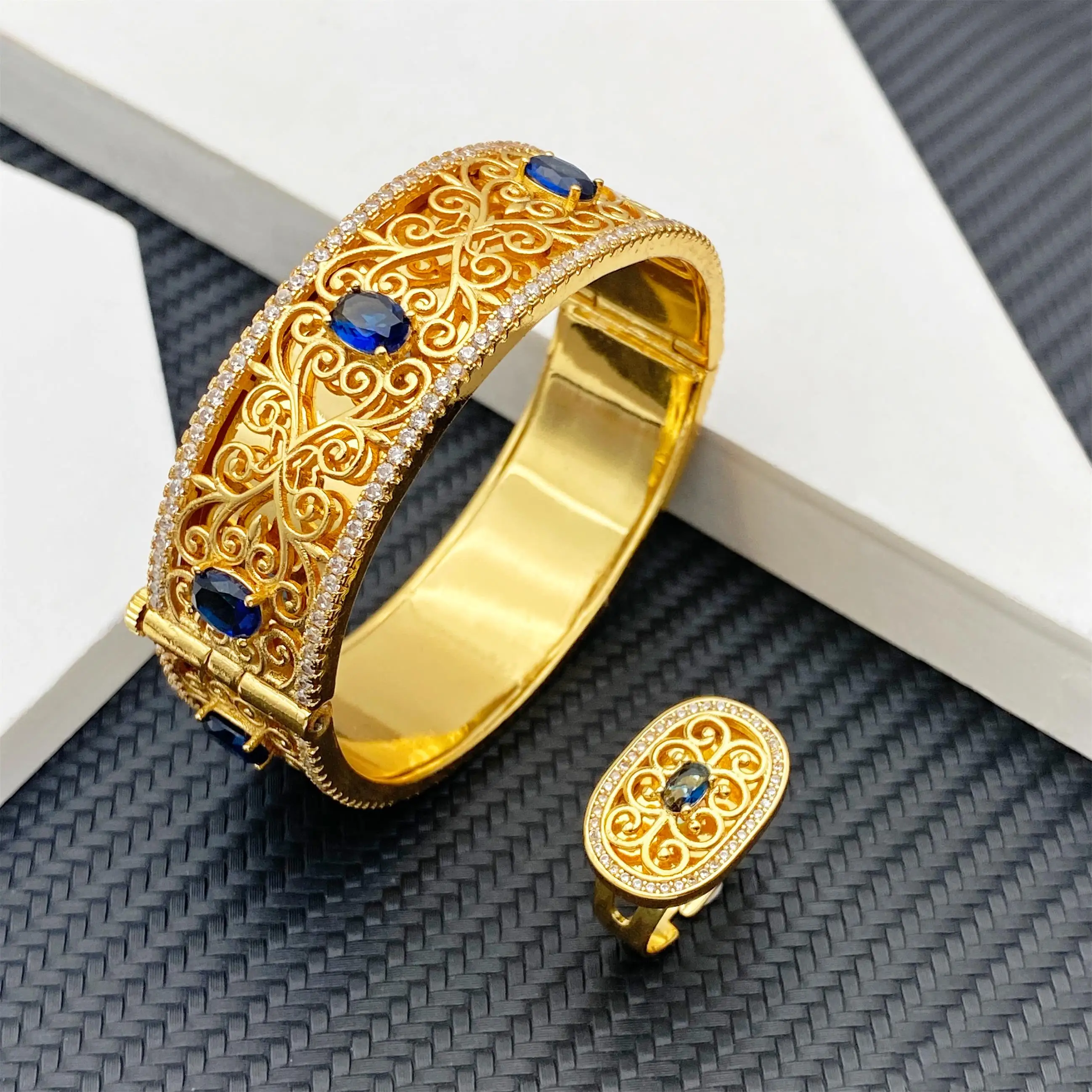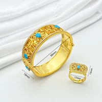 New Fashion For Women Dubai Wedding Plated-Gold Color Bangle Ring Jewelry Set African Gift Bridal Jewelry