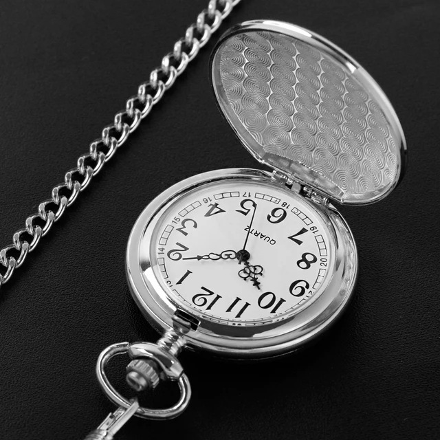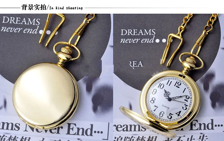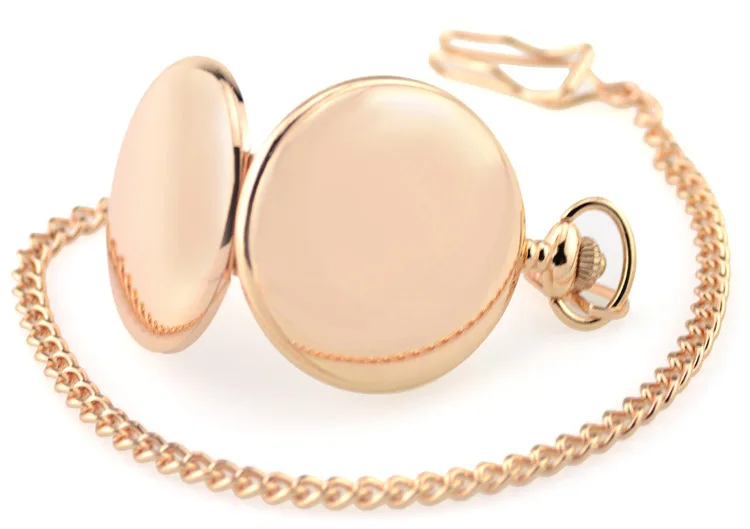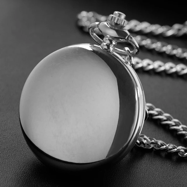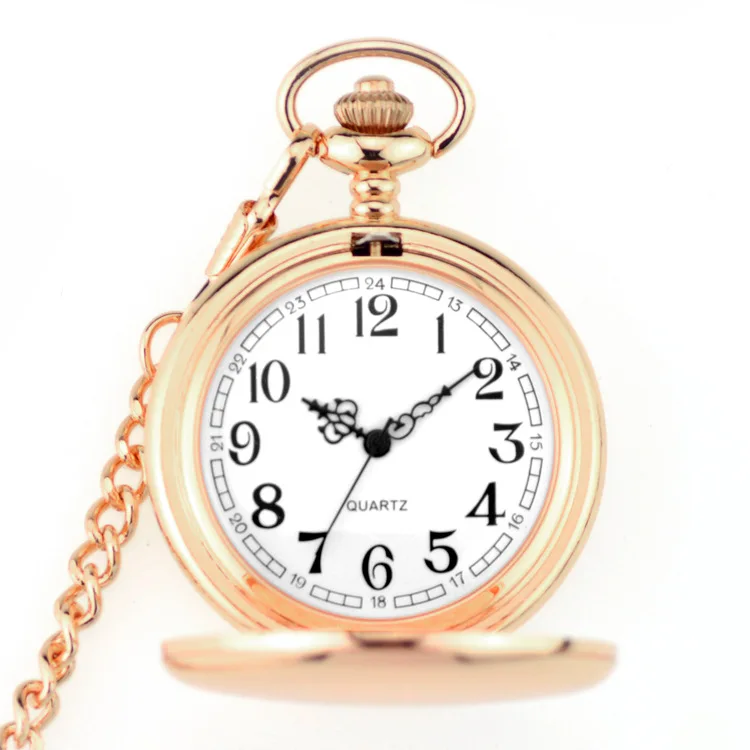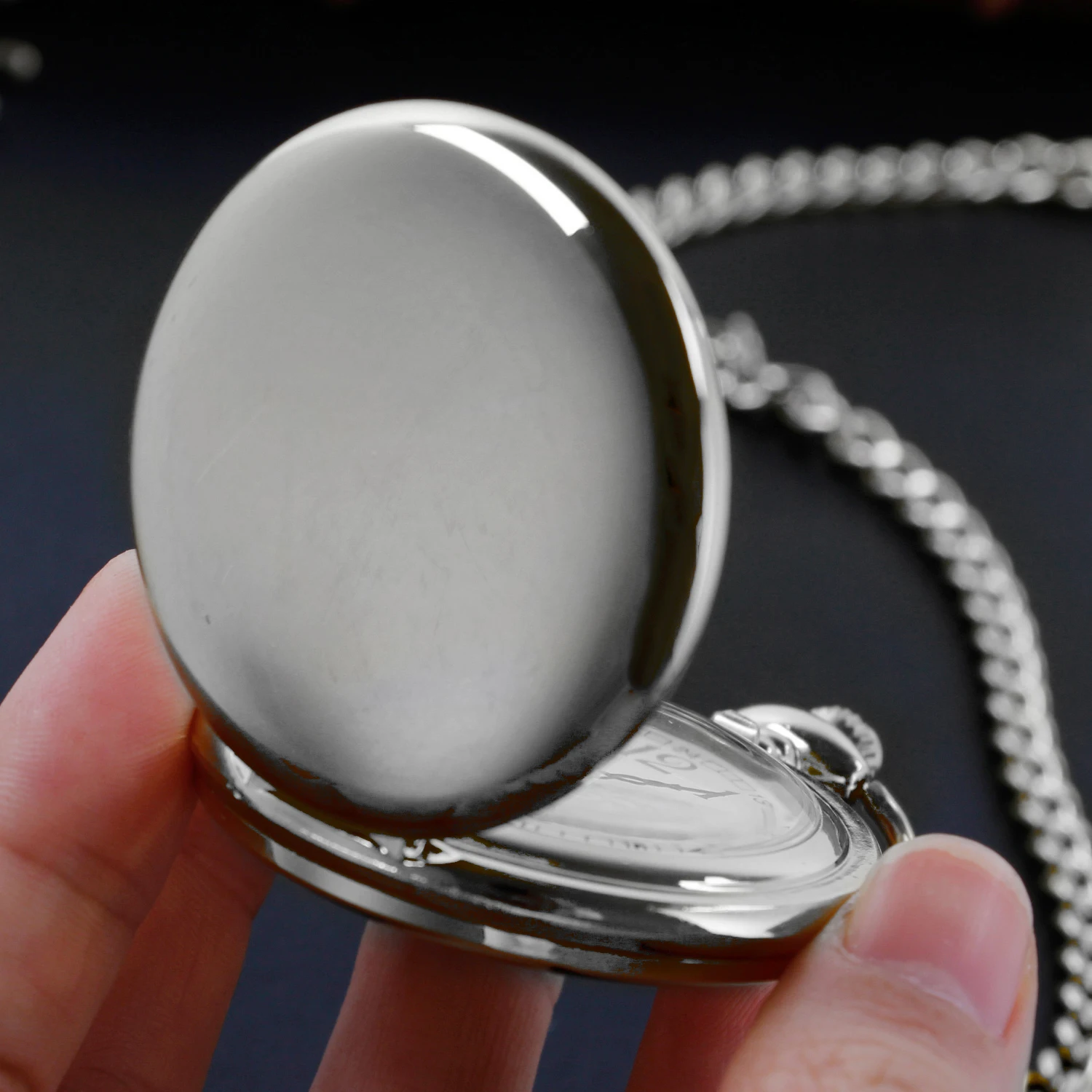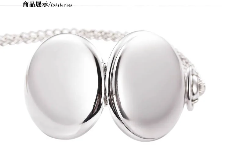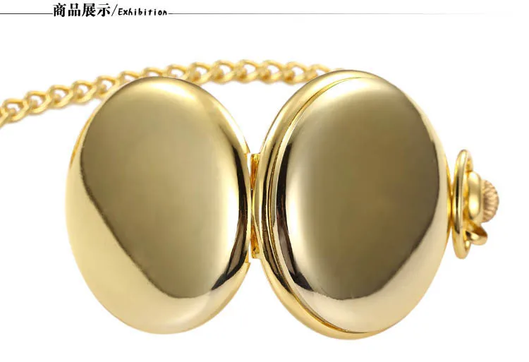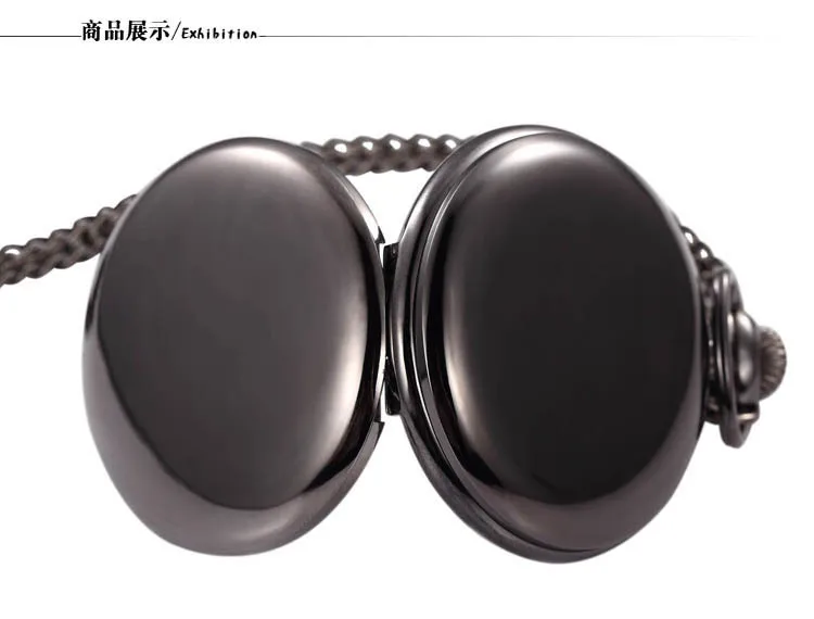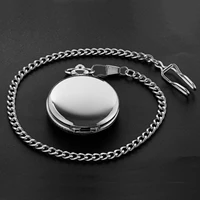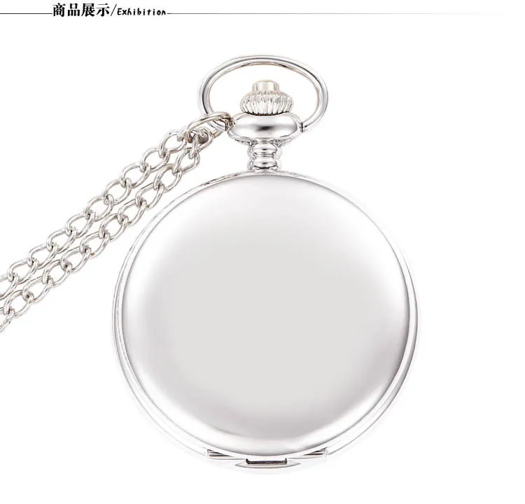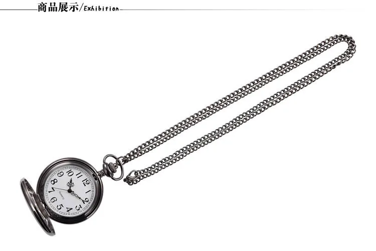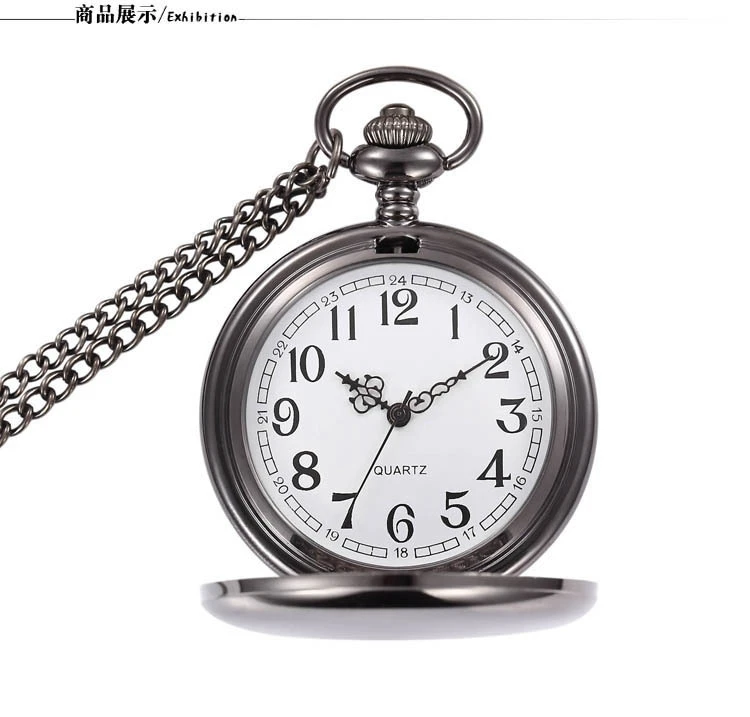 New Fashion Silver/Bronze/Black/Gold Polish Smooth Quartz Pocket Watch Jewelry Alloy Pendant with Chain