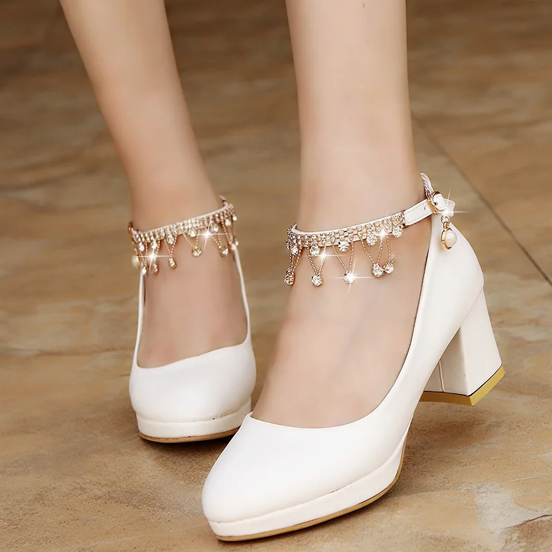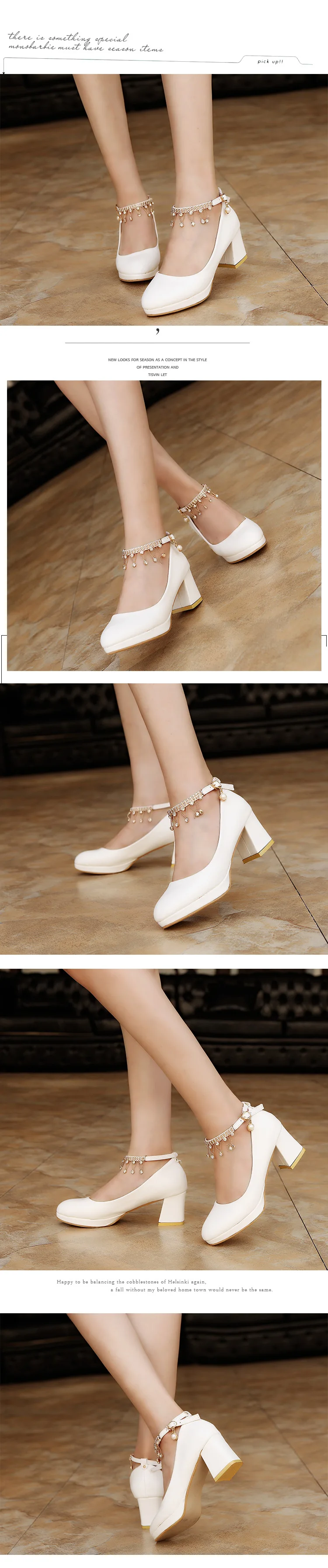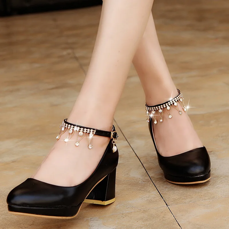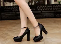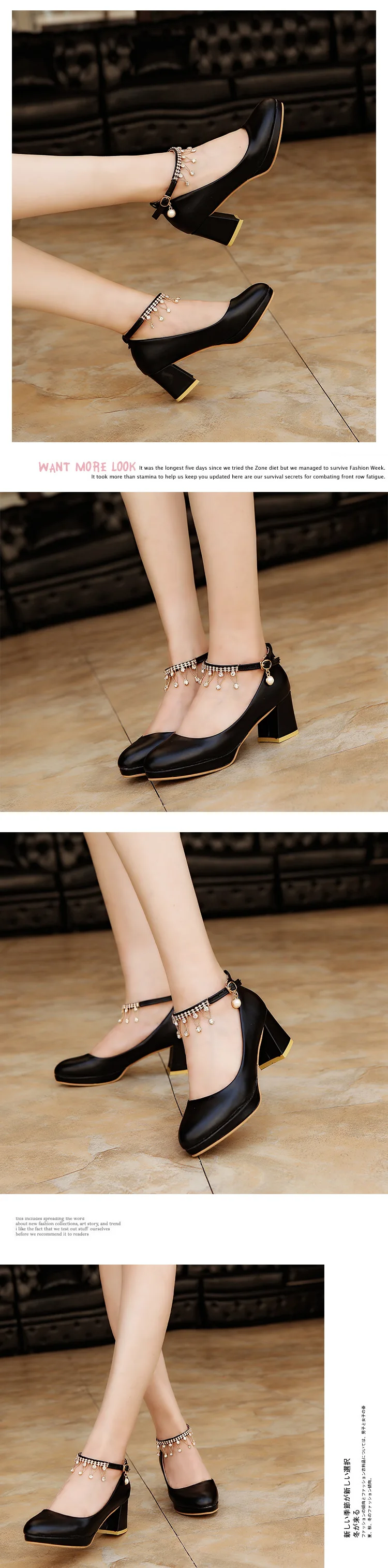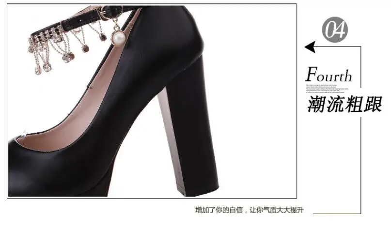 New Fashion Women Pumps Black High heels 6-11cm Lady Patent leather Thick with Autumn Round head Shoes