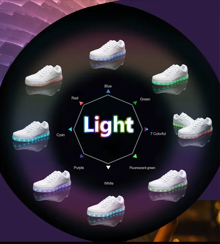 • USB Rechargeable LED Lights : These shoes feature USB rechargeable LED lights, providing a stylish and practical way to light up your night walks or runs.
