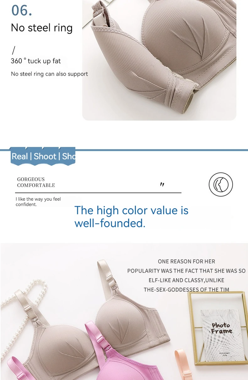 New Front Button Type Sexy Brassiere Anti-sagging Gathered No Steel Ring Ladies Mother Large Size Thin
