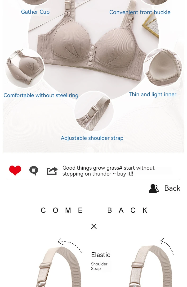 New Front Button Type Sexy Brassiere Anti-sagging Gathered No Steel Ring Ladies Mother Large Size Thin Section Underwear Bra