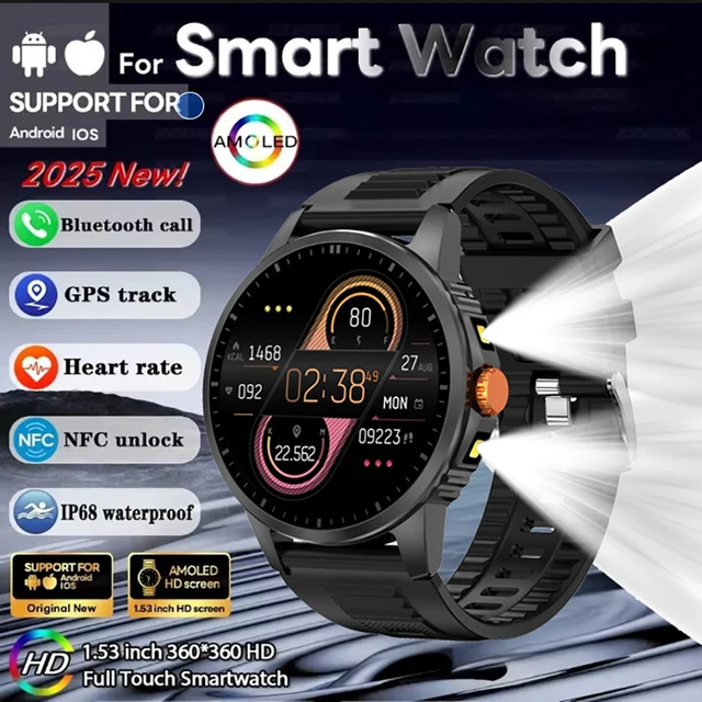 New GPS Sport Smart Watch for Men Women Outdoor Flashlight Bluetooth Call Watch Multiple Sport Modes Long Battery Amoled Screen